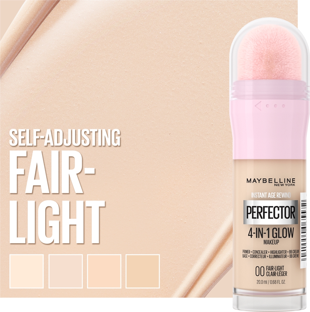 Четыре продукта в одном, чтобы быстро и безупречно выполнить макияж. Разглаживающая тональная основа, придающая лицу естественный вид Maybelline Instant Age Rewind Perfector 4-in-1 Glow объединяет в себе базу под макияж, корректор, BB-крем и пудру. Она разглаживает кожу, скрывает недостатки, выравнивает тон и придает сияние. Легкая текстура идеально сливается с кожей, делая ее естественной, и в то же время держится весь день.