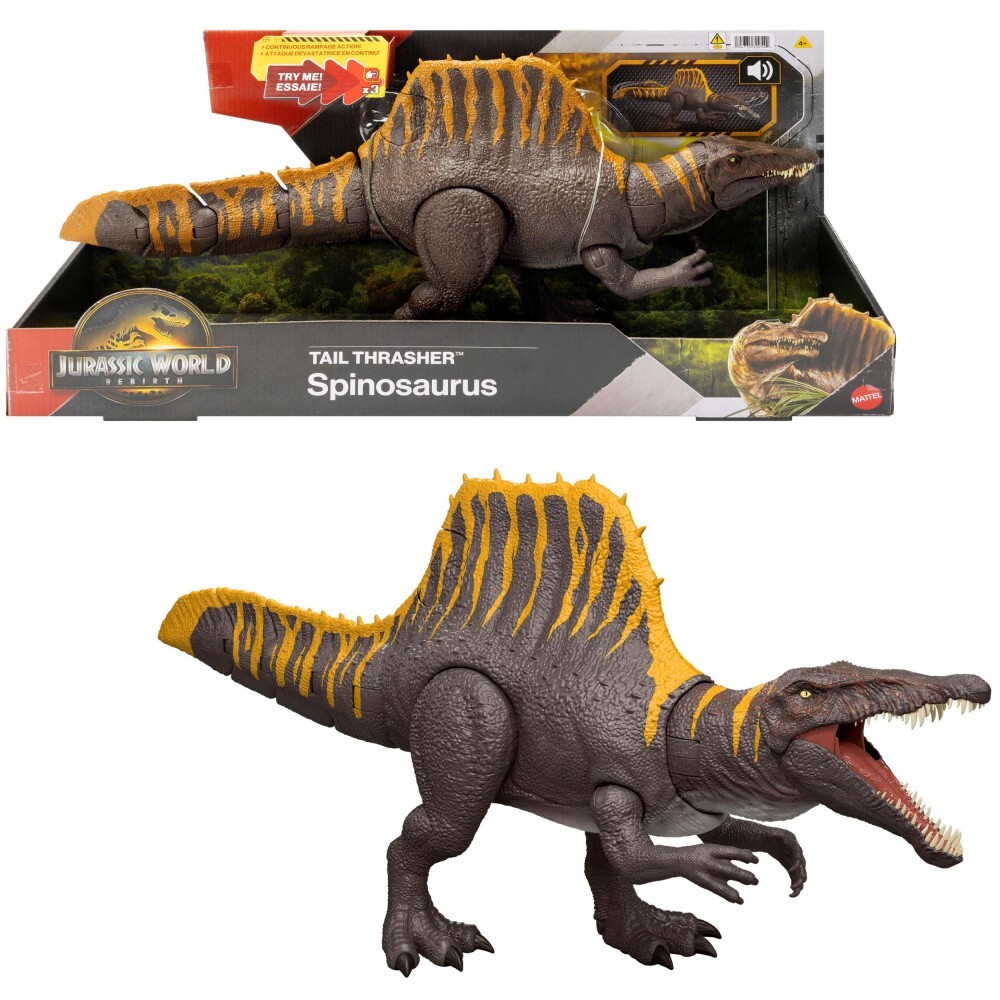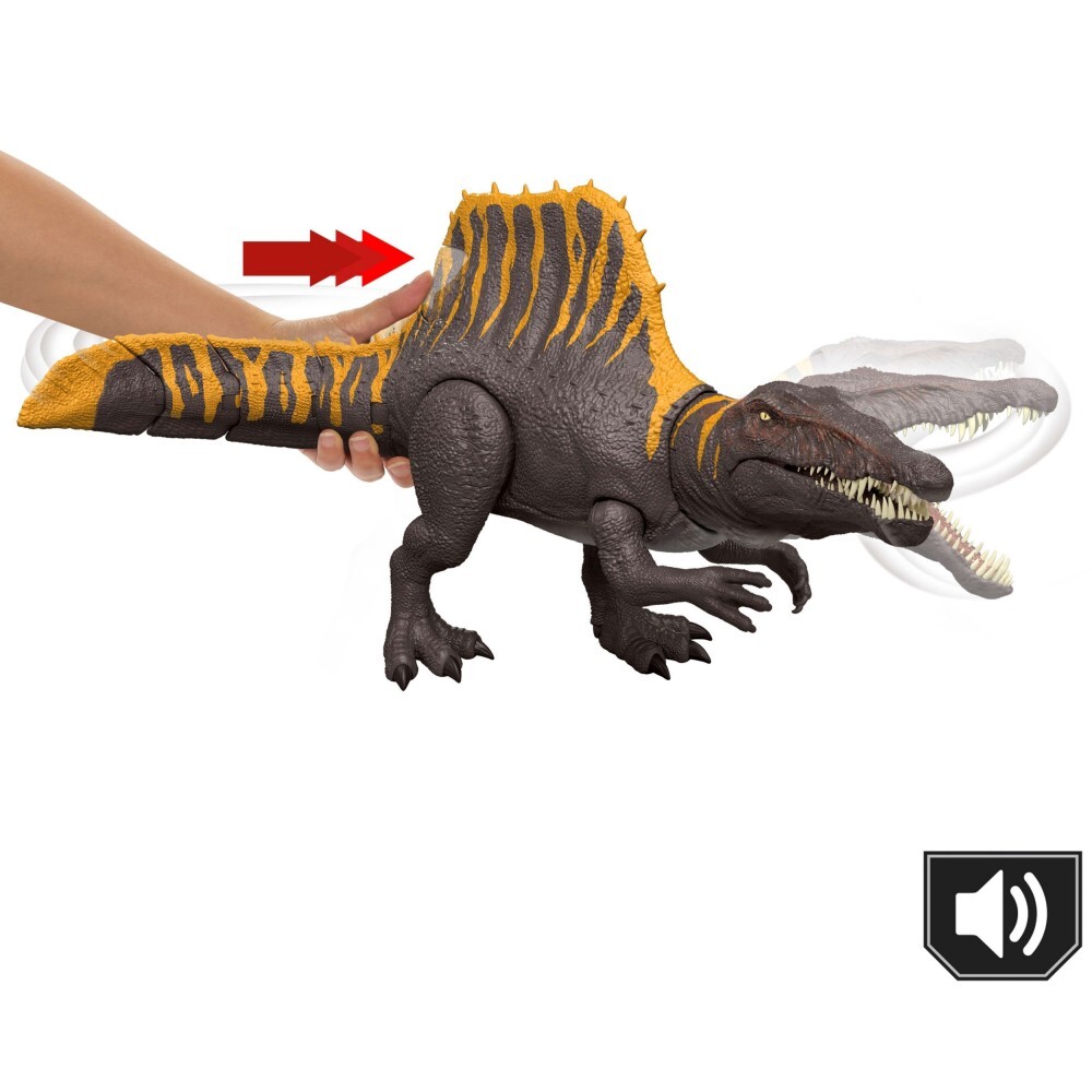 JURASSIC WORLD Dinosaur SPINOZAUR - большая фигурка, внешний вид которой вдохновлен культовым фильмом "Мир Юрского периода: Возрождение". Эта массивная доисторическая рептилия достигает пятидесяти трех сантиметров в длину! Его коричневая кожа имеет грубую, похожую на рептилий текстуру, а зубы выглядят очень острыми! Благодаря характерной спинной складке спинозавр позволяет детям устраивать захватывающие приключения в детской комнате.