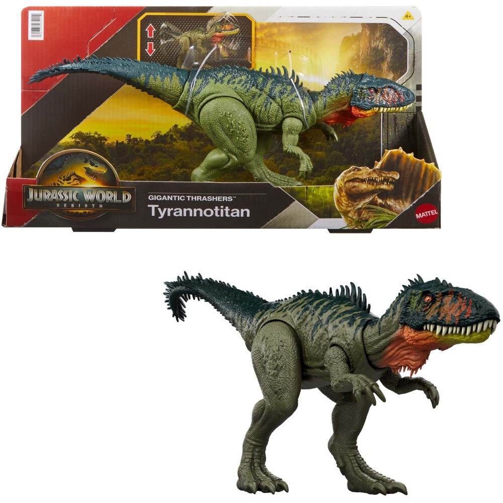 Динозавр JURASSIC WORLD ТИРАНОТИТАН - реалистично выполненная подвижная фигурка, вдохновленная популярным фильмом "Мир Юрского периода: Возрождение". Модель впечатляет двумя зрелищными атаками, которые дети могут совершать движением хвоста.