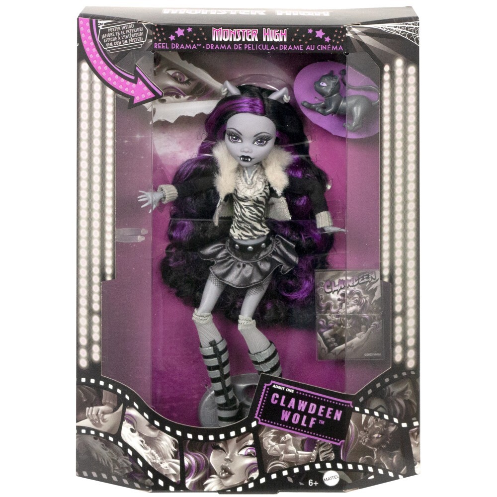 Атмосферная упаковка и классический черно-белый стиль Monster High делают куклу Clawdeen Wolf настоящим праздником для коллекционеров, любителей ретро-стиля и веселья.