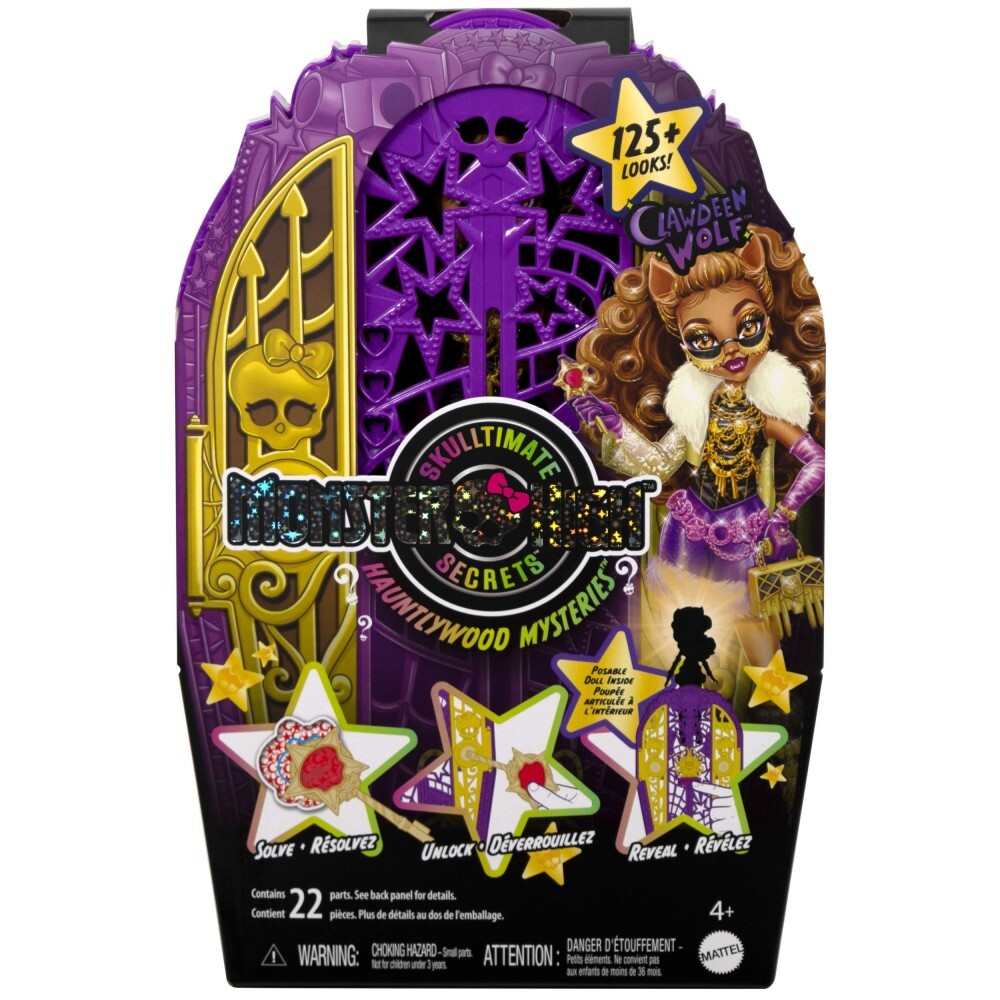 Кукла CLAWDEEN WOLF отправилась в путешествие по Холлидуху, но никто ее еще не видел! Ищите подсказки, чтобы найти место, где прячется кукла, и девятнадцать аксессуаров. Используйте лупу, чтобы найти уникальные символы на карте к сокровищам. Найдите части магического талисмана и соберите их. Прикрепите талисман к основанию шкафа, а затем сдвиньте его вверх, чтобы открыть куклу Monster High, стилизованную под когти! Вы можете повторять этот захватывающий момент снова и снова. А модные аксессуары из пакетиков идеально подходят для красной дорожки!