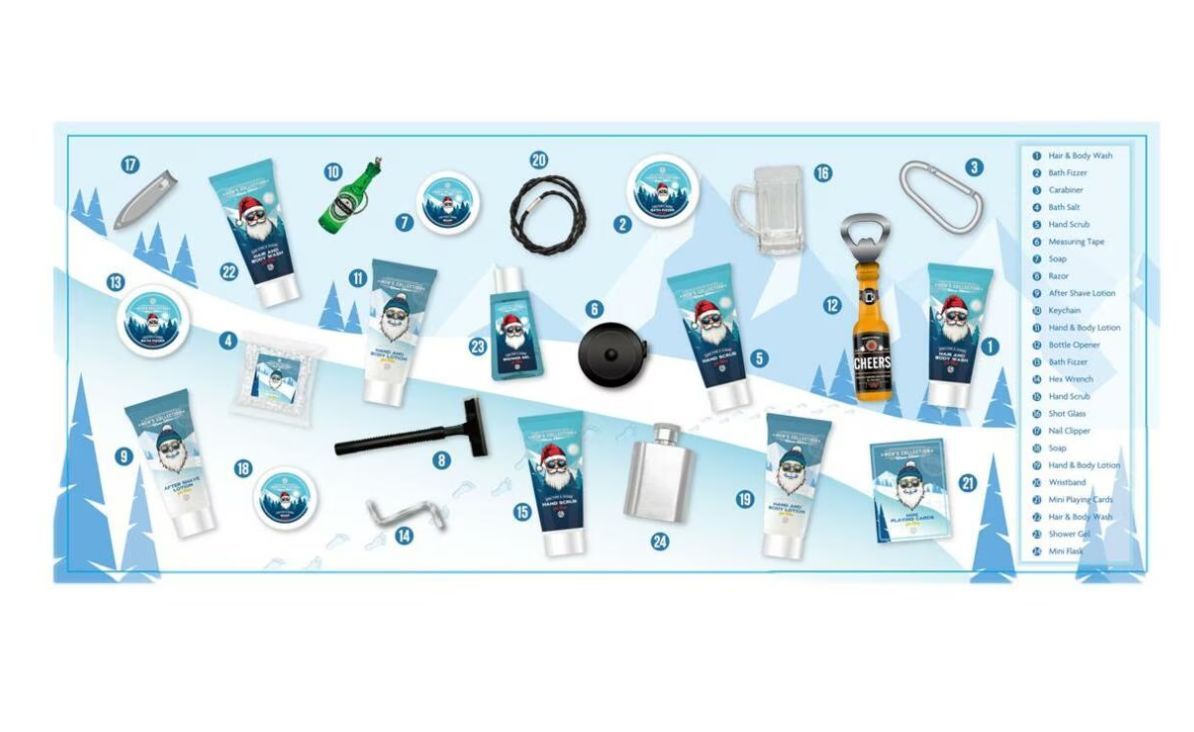 Мужской адвент-календарь 2025 - 24 Day Advent Calendar, эксклюзивные бьюти-сюрпризы для лица и тела, косметика для всех типов кожи