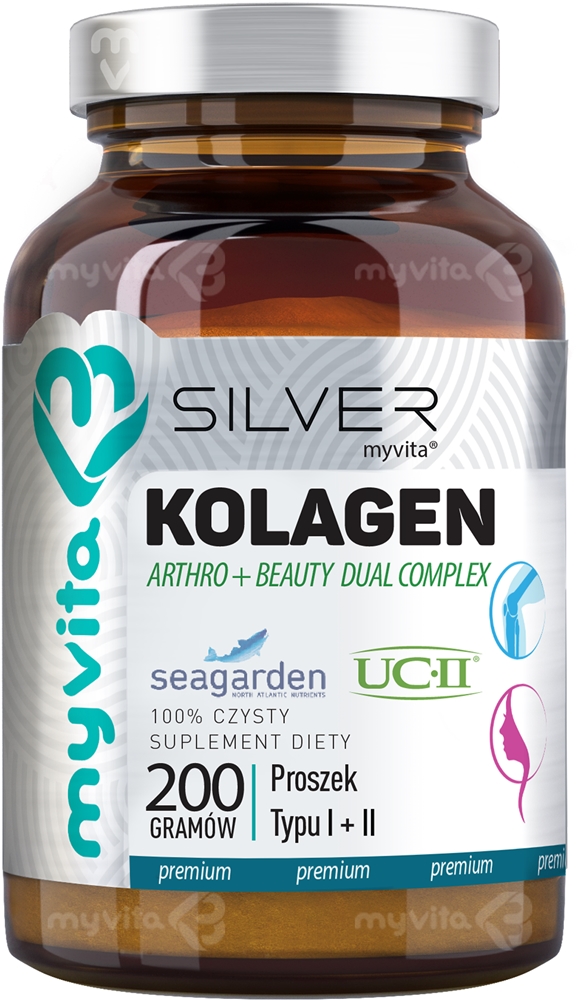 Приготовьте себе высокоэффективный коллагеновый коктейль, который влияет не только на здоровье опорно-двигательной системы, но также на красоту кожи, ногтей и волос. Диетическая добавка для суставов и хрящей MyVita объединяет в себе два вида коллагена: гидролизованный коллаген типа I SeaGarden из трески и нативный коллаген типа II UC-II.
