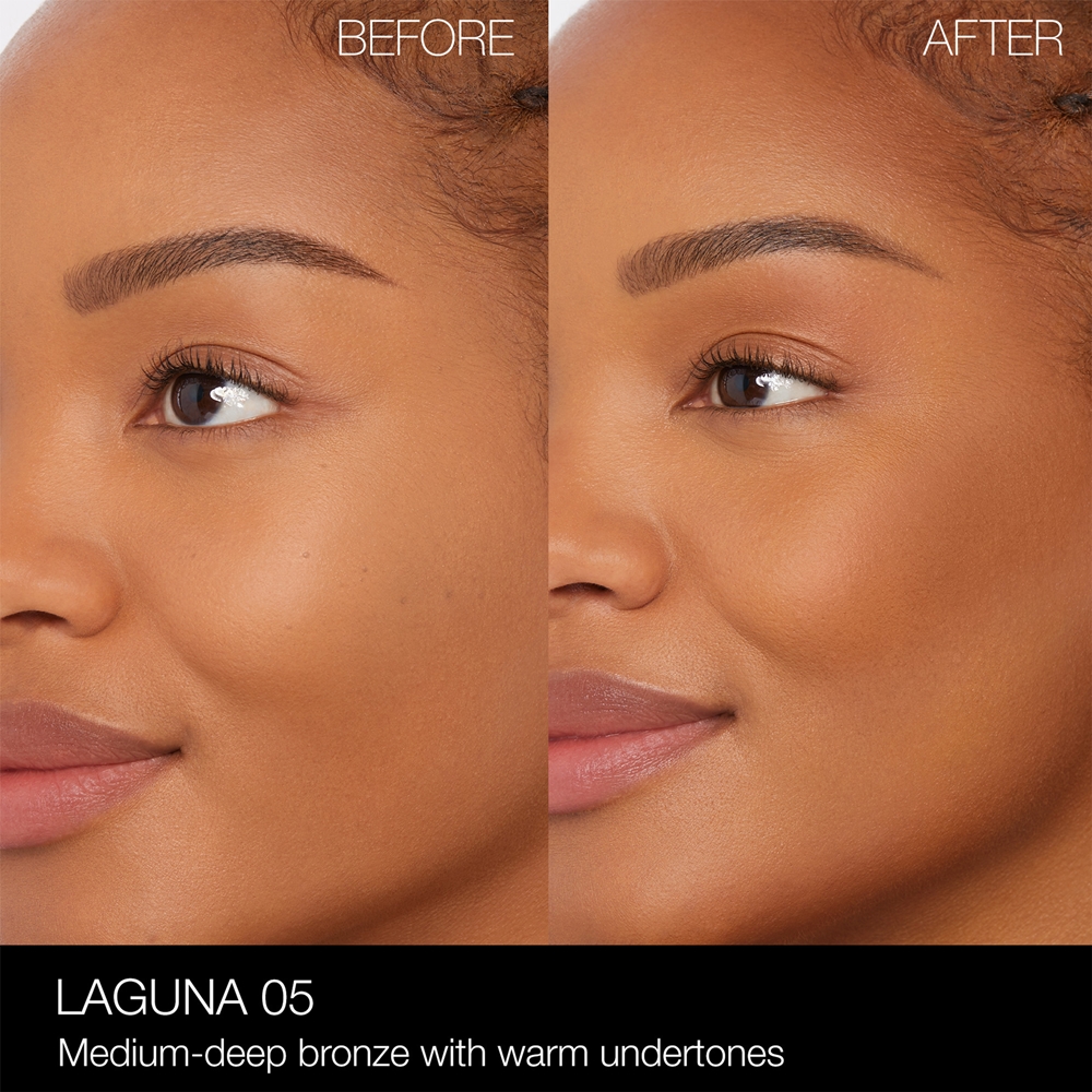 Бронзирующую пудру NARS LAGUNA можно использовать несколькими способами. Если вы предпочитаете более теплый оттенок на всем лице, нанесите пудру на скулы и распределите ее в сторону и вверх вдоль скулов. Также нанесите небольшое количество на лоб и верхнюю часть носа.