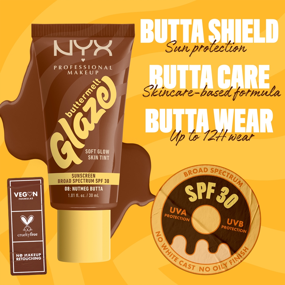 NYX Professional Makeup Buttermelt Glaze - Тонирующий крем для лица с SPF 30 оттенок 08 Nutmeg Butta, 30 ml
