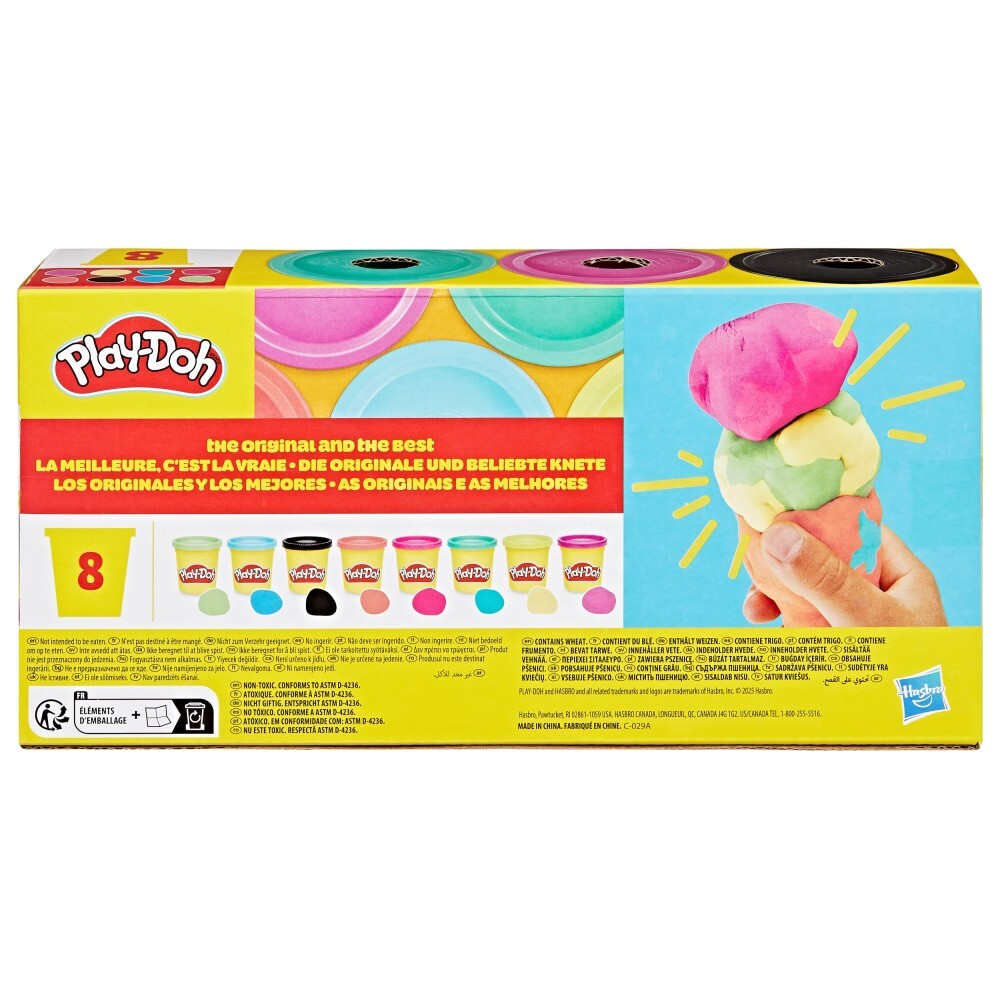 Doughcolina COLOUR EXPLOSION - это набор из восьми тюбиков цветного пластилина Play-Doh, среди которых три оттенка зеленого, а также синий, фиолетовый, розовый, оранжевый и черный. Такое разнообразие цветов - идеальная возможность поэкспериментировать со смешиванием красок, научиться распознавать цвета и развить ручные навыки. Творчество детей не знает границ - особенно когда в ход идут насыщенные, сочные цвета! Упаковка с тюбиками отлично подойдет в качестве подарка, приза, вклада в школьный набор для творчества или дополнит другие наборы Play-Doh (продаются отдельно). А главное, это безопасная и проверенная игрушка.