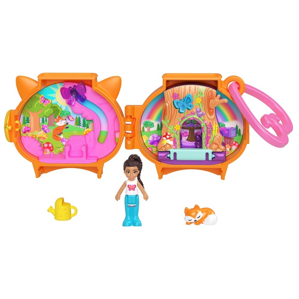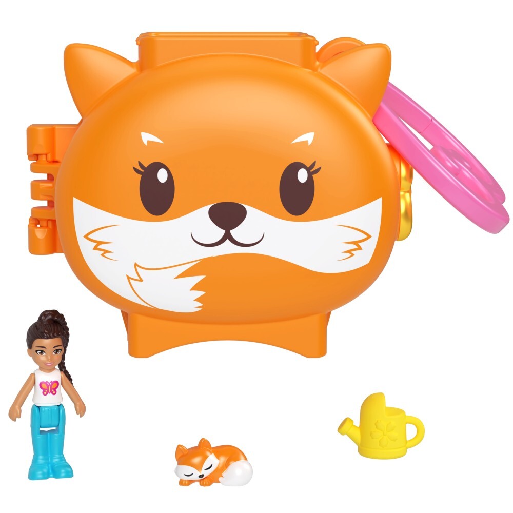 Компактный набор POLLY POCKET "Лиса" - это брелок для ключей в форме милого животного. Откройте его и откройте привлекательное игровое пространство в миниатюре! Здесь вы найдете мини-куклу, спящего лисенка и желтую лейку.
