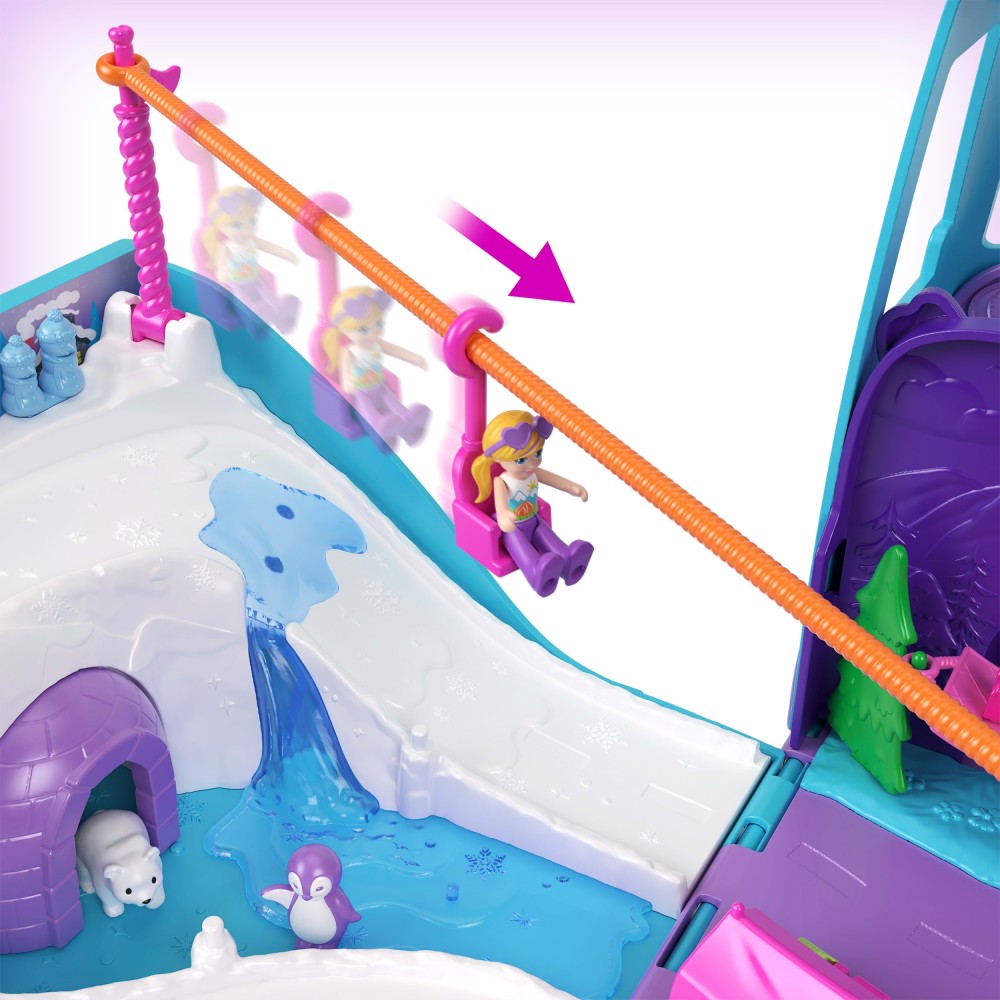 Кемпер имеет вращающиеся колеса и наклейки для декорации, а после открытия приглашает на приключения с животными и друзьями на природе! Куклы могут плавать в вращающемся бассейне с ящерицей и черепахой, серфить с дельфином, качаться на гамаке или прокатиться на подъемнике, чтобы насладиться видами. Садитесь в машину, чтобы доехать с пляжа на горнолыжный склон и обратно! После целого дня на лыжах отдохните в иглу с полярным медведем. Мило!