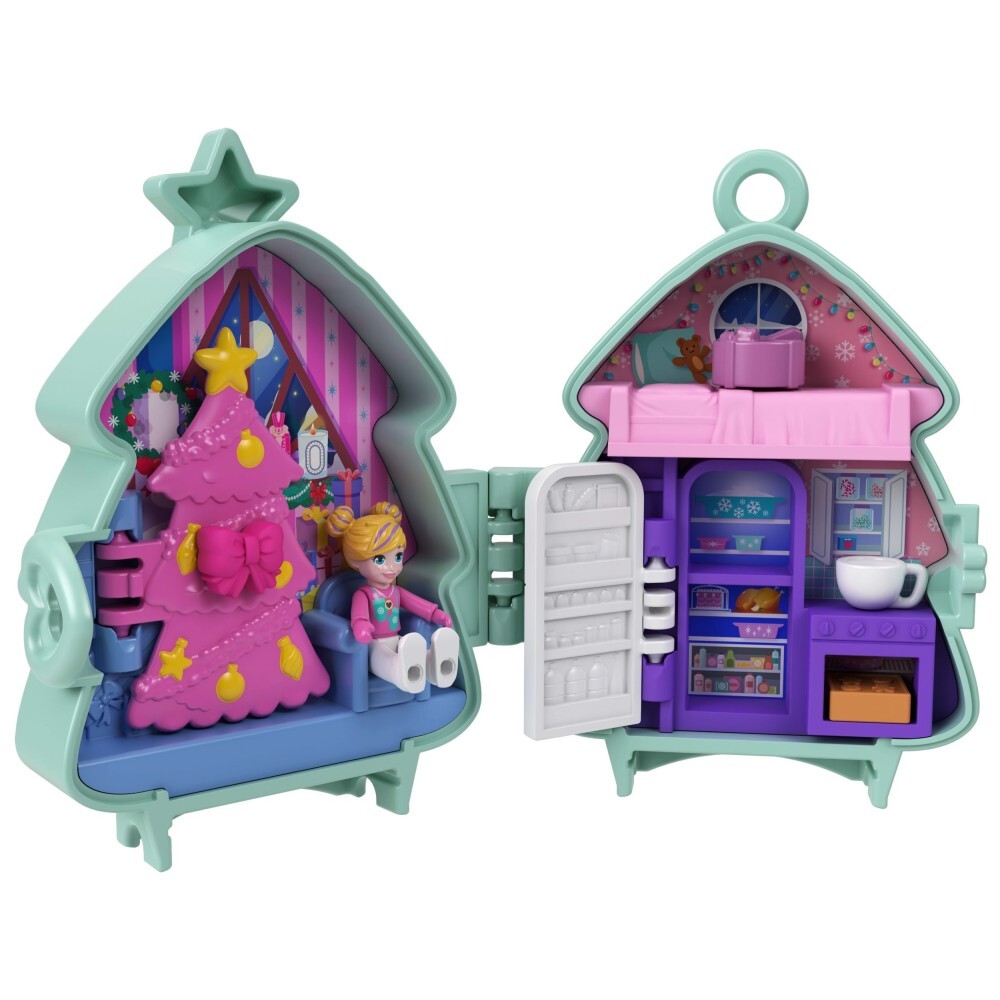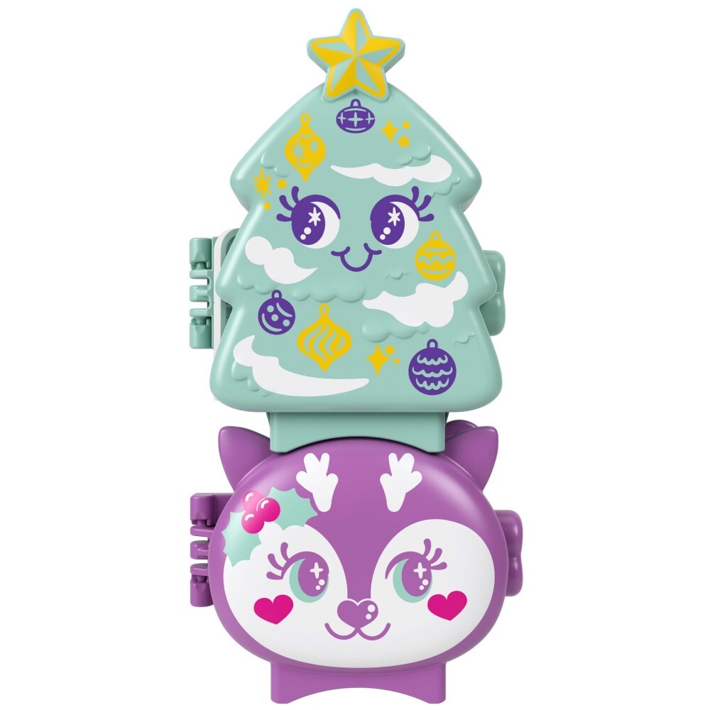 праздничный компактный набор Polly Pocket из двух штук - северный олень + рождественская елка