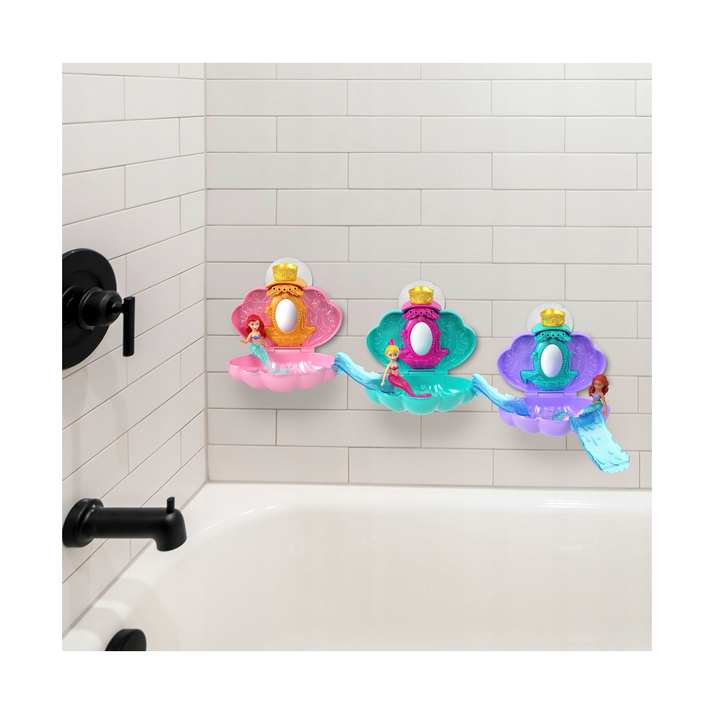 Погрузитесь в мир веселья с принцессами Disney! Чтобы начать веселье, прикрепите ракушку к стене душевой кабины или ванной с помощью присоски. А теперь самое интересное - помогите русалочке скатиться с горки, чтобы она нырнула в воду! В серии есть разные наборы Disney Princess Mermiad Bath JBL34 (продаются отдельно), которые можно комбинировать. Для еще большего веселья!