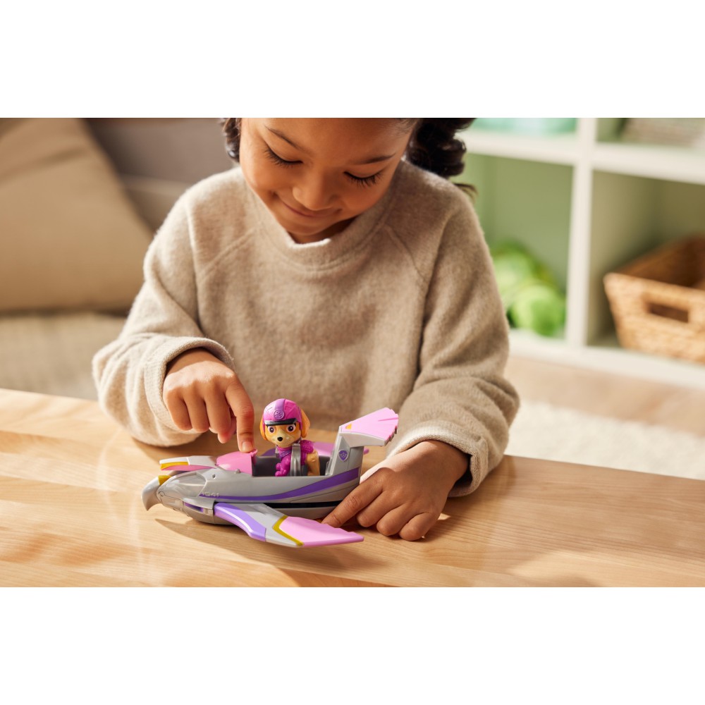 Трансформирующийся реактивный самолет Сокол предлагает захватывающее превращение в режим спасения. Поставьте фигурку щенка Скай в кабину и отправляйтесь на творческую игру!