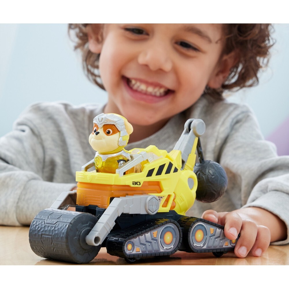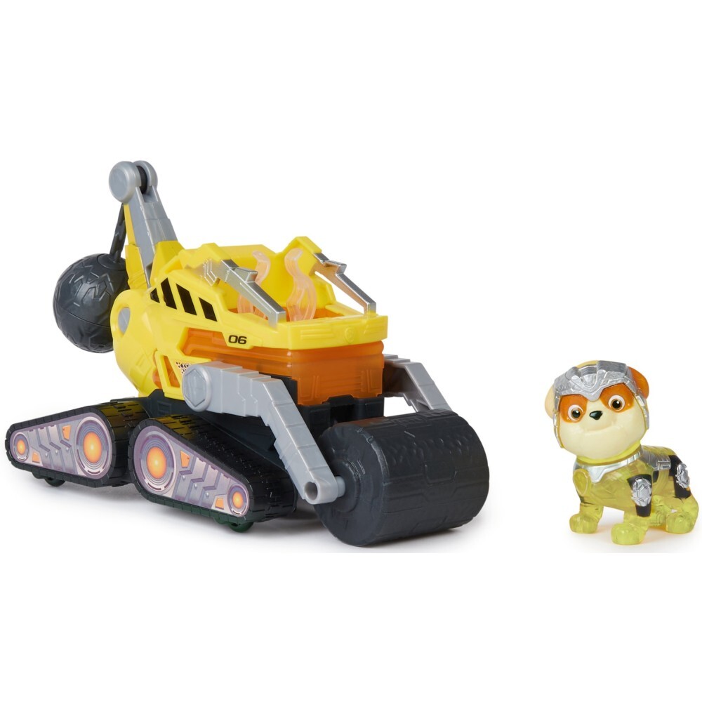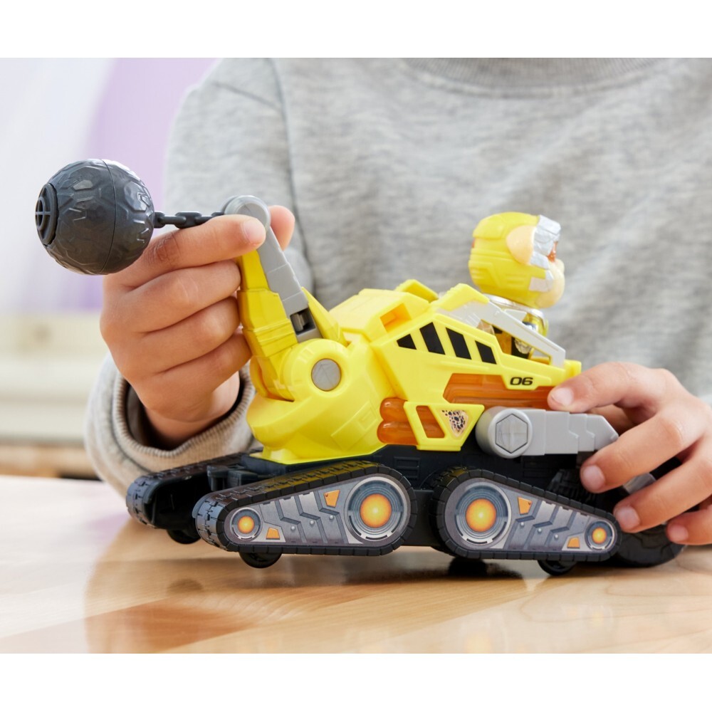 Машина для собак Rubble имеет массивный, реалистичный дизайн, вдохновленный фильмом. Спереди есть вращающийся ролик и шар для разрушения, чтобы сделать веселье еще более динамичным! Посадите щенка на водительское сиденье, и синхронизированные огни и звуки (звуки разрушения, музыка из сериала, работа двигателя, лай) активируются, а лапы Раббла начинают светиться - прямо как у супергероя из "Большого кино"! Собака одета в специальный костюм из фильма: с полупрозрачными элементами и защитным шлемом.