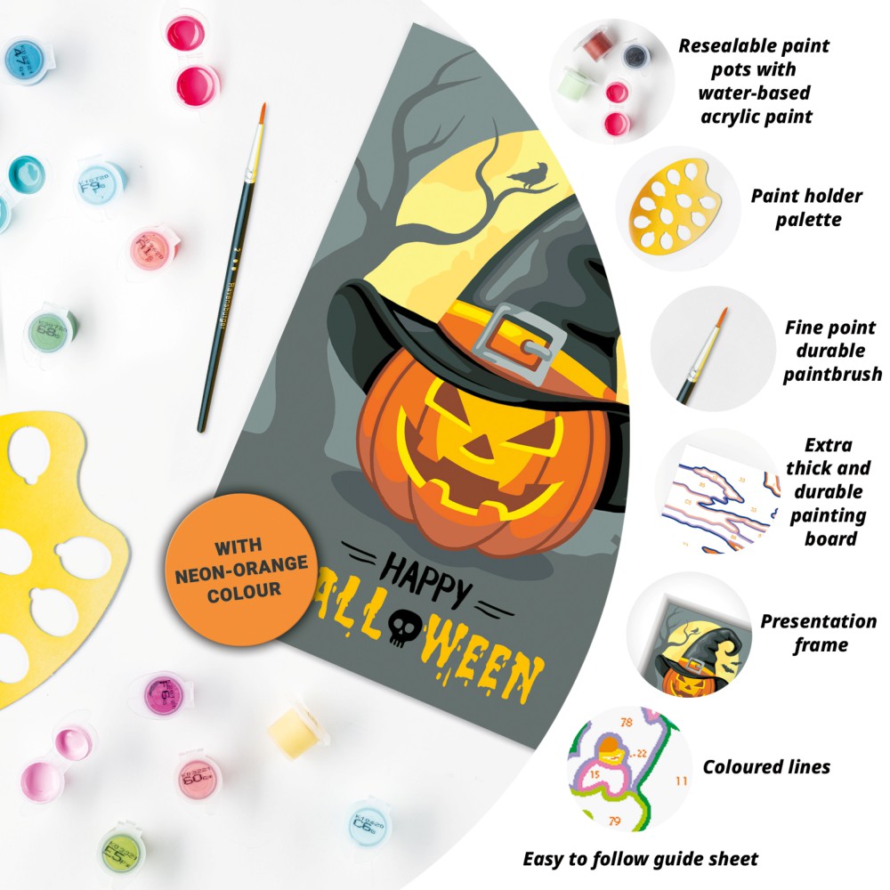 Нумерованная высококачественная картонная основа и предварительно нанесенные цветом контуры облегчат процесс рисования и помогут достичь удивительного эффекта. Время Хэллоуина!