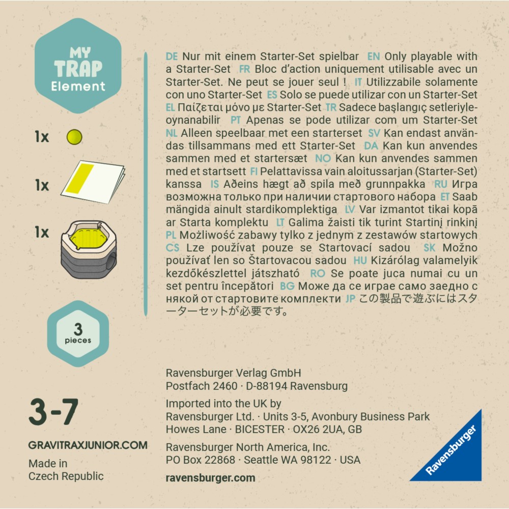 - дополнительный набор - возможность игры только с стартовым набором GraviTrax Junior 274994 и 270590 (продается отдельно)