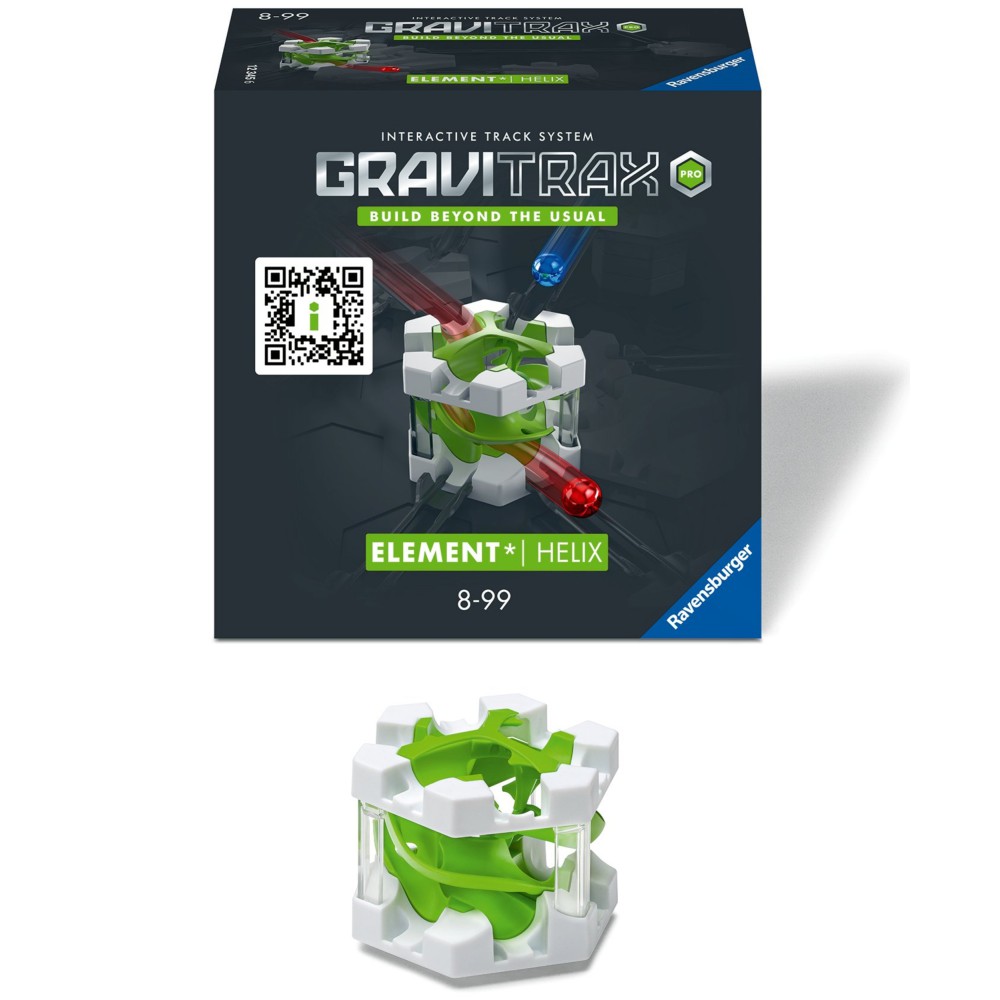 GraviTrax PRO Helix - это дополнение, которое объединяет до шести треков! Шарик, попадая в геликс, катится на уровень ниже, не меняя своего направления. Даже шесть шариков могут проходить через дополнение одновременно!