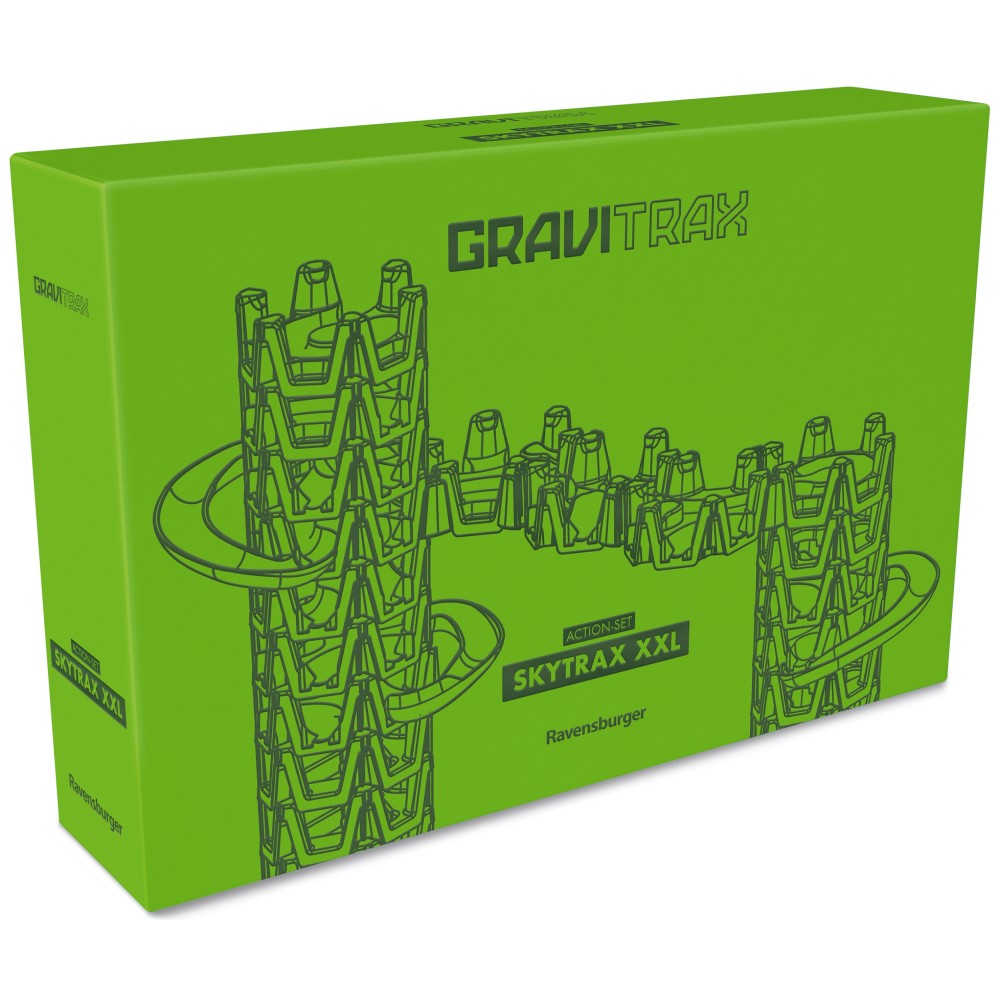 GraviTrax SKYTRAX XXL - это полный самостоятельный стартовый набор. Этот большой пакет включает инновационные элементы, позволяющие создавать конструкции как по вертикали, так и по горизонтали. Ваши постройки будут выше, чем когда-либо, а шарики будут падать, ускоряться и пролетать через разные уровни! Skytrax предлагает совершенно новый способ строительства мостов. Благодаря специальным соединителям шарики могут двигаться над доской, расширяя возможности проектирования трассы. Постройте полный поворотов и неожиданных препятствий путь!