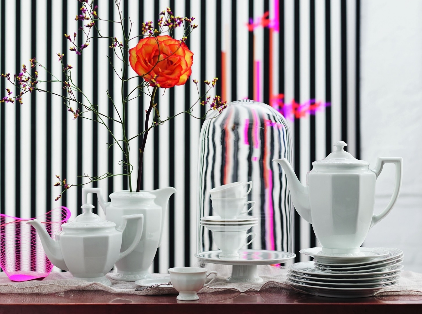 Чрезвычайно прочный фарфор, обожженный при температуре 1000 градусов Цельсия, производится в Германии. Благодаря этому он сохраняет свои свойства и великолепный внешний вид долгие годы. Чрезвычайно устойчив к царапинам, подходит для использования в посудомоечной машине и микроволновой печи.