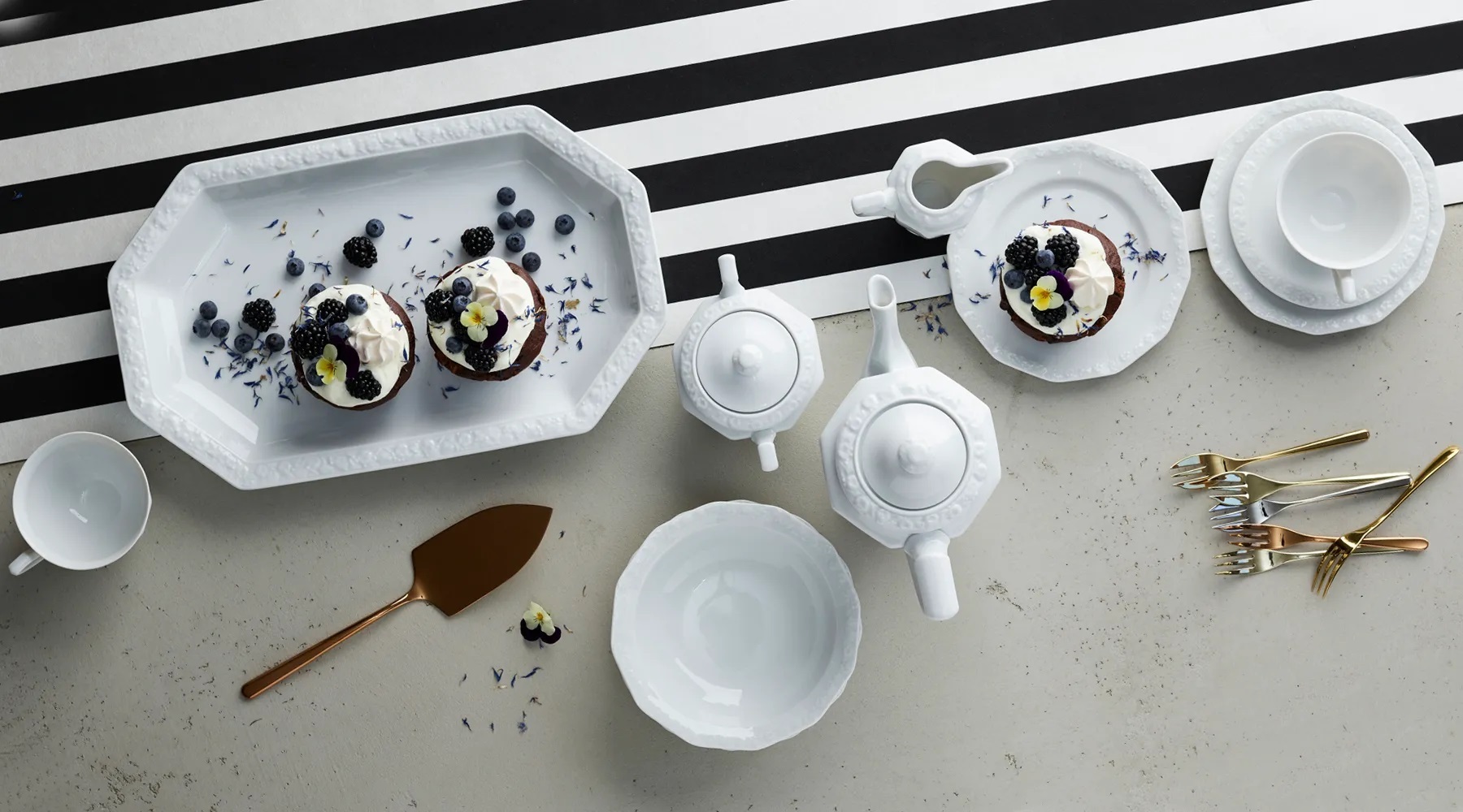 Сервиз «Белая Мария» был разработан Филиппом Розенталем в 1916 году и посвящен его жене Марии де Берж. В настоящее время эта посуда представляет собой одну из самых узнаваемых и обширных коллекций в мире, вошедшую в историю как синоним красоты и роскоши. За последние 25 лет по всему миру было продано более 15 миллионов пластинок этой серии! Уже более 100 лет Бяла Мария радует тонким гранатовым узором и характерным оттенком белого.