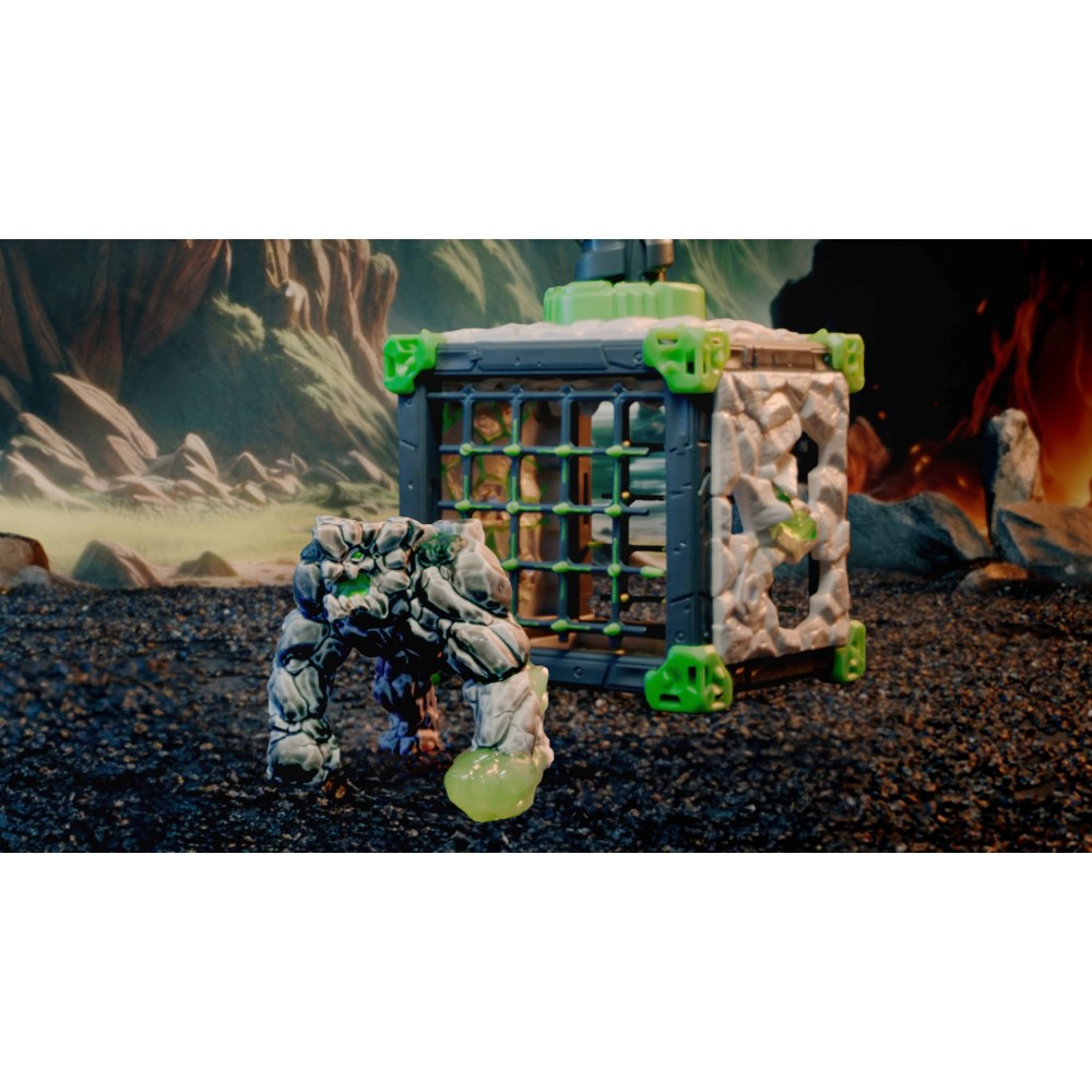 БОЕВАЯ ПЕЩЕРА с Каменным Дробителем - настоящая крепость, полная ловушек. Перед входом в BattleCave стоит могучий Каменный Дробитель - неподвижный как скала, бдительный и готовый к атаке. Его зеленые глаза следят за каждым движением, и как только кто-то попытается украсть кристалл мира, колосс мгновенно машет кристальным кулаком, дробя противников. Даже если нарушителям удастся проскользнуть мимо стража, их ждет опасная яма. Когда враг попадает внутрь, ловушка безжалостно закрывается, и это только начало! Каменный Дробитель способен вращать огромный винт, из-за чего усыпанный шипами потолок опасно опускается! Набор BattleCave - идеальное предложение для мальчиков, любящих динамичные столкновения, могучих существ и эпические истории!