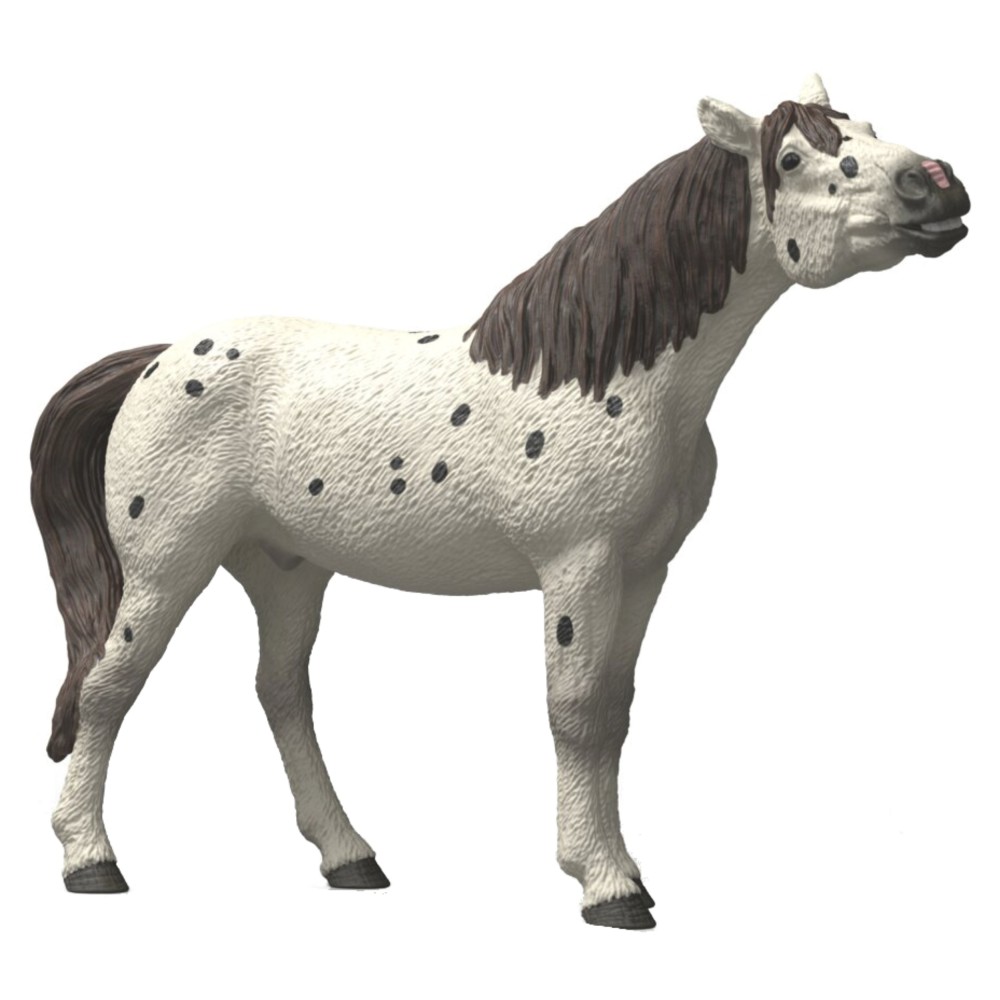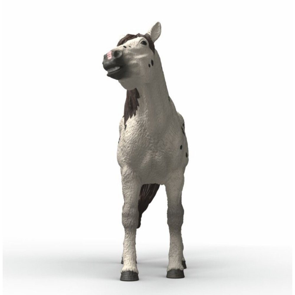 Конь породы KNABSTRUPPER привлекает внимание своим уникальным окрасом - снежно-белая шерсть с четкими черными пятнами делает его непохожим на другие породы. Неудивительно, что он всегда выглядит эффектно и элегантно во время езды. Теперь его внимание сосредоточено на чем-то другом. С вытянутой вперед шеей он поднимает голову и характерно флегмует, исследуя запах в воздухе. Это естественное поведение лошадей, которое помогает им лучше ориентироваться в окружающей среде. Почувствовал ли он присутствие другой лошади? Порода knabstrupper происходит из Дании и славится не только уникальным пятнистым окрасом, но и интеллектом и спокойным характером. В детской игре конь может участвовать в тренировках, гулять по пастбищу или стать звездой шоу Horse Club!