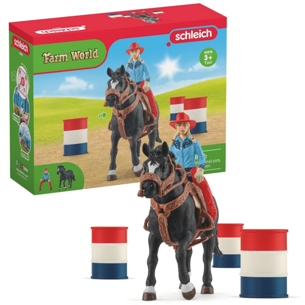 Набор "Ковбойка и гонка вокруг бочек" позволит вам воссоздать сложный слалом между бочками на коне.