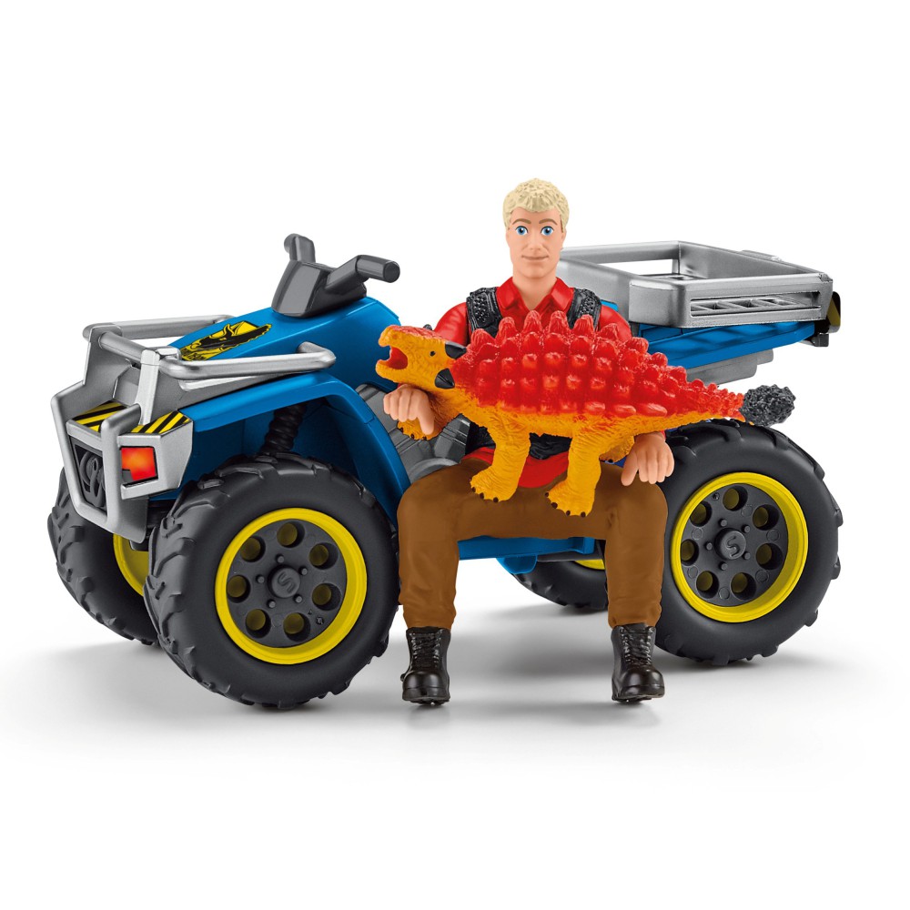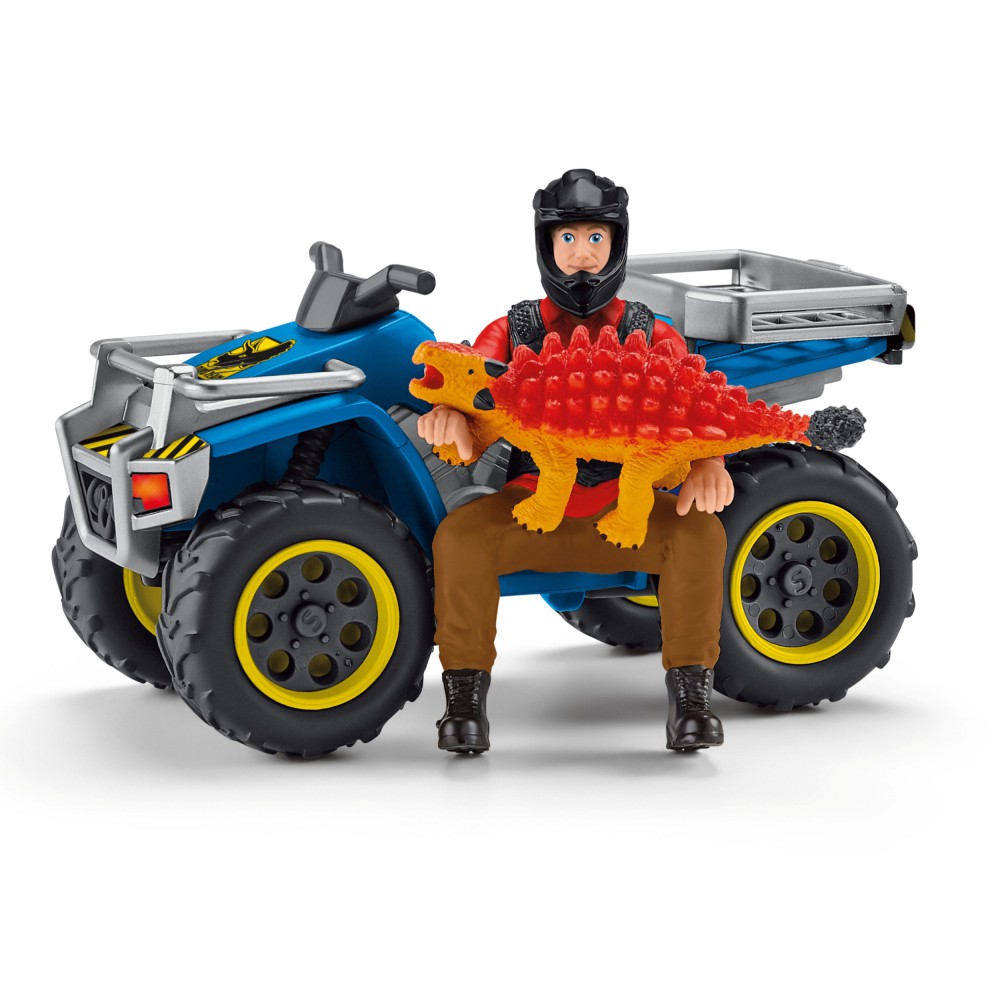 Побег на квадроцикле от Велоцираптора 41466 - идеальное дополнение к большой научной станции динозавров (41462). Опасный велоцираптор подстерегает в зарослях и готовится атаковать маленького анкилозавра. К счастью, Флинн приезжает на своем квадроцикле и спасает его. Набор "Побег на квадроцикле от велоцираптора" предлагает множество возможностей для великолепной игры! Познайте весь мир динозавров Schleich и удивительные приключения братьев Колби. Набор отлично дополняет серию динозавров. Дети могут играть с этим набором самостоятельно или комбинировать с другими наборами, создавая новые сюжеты во время игры.