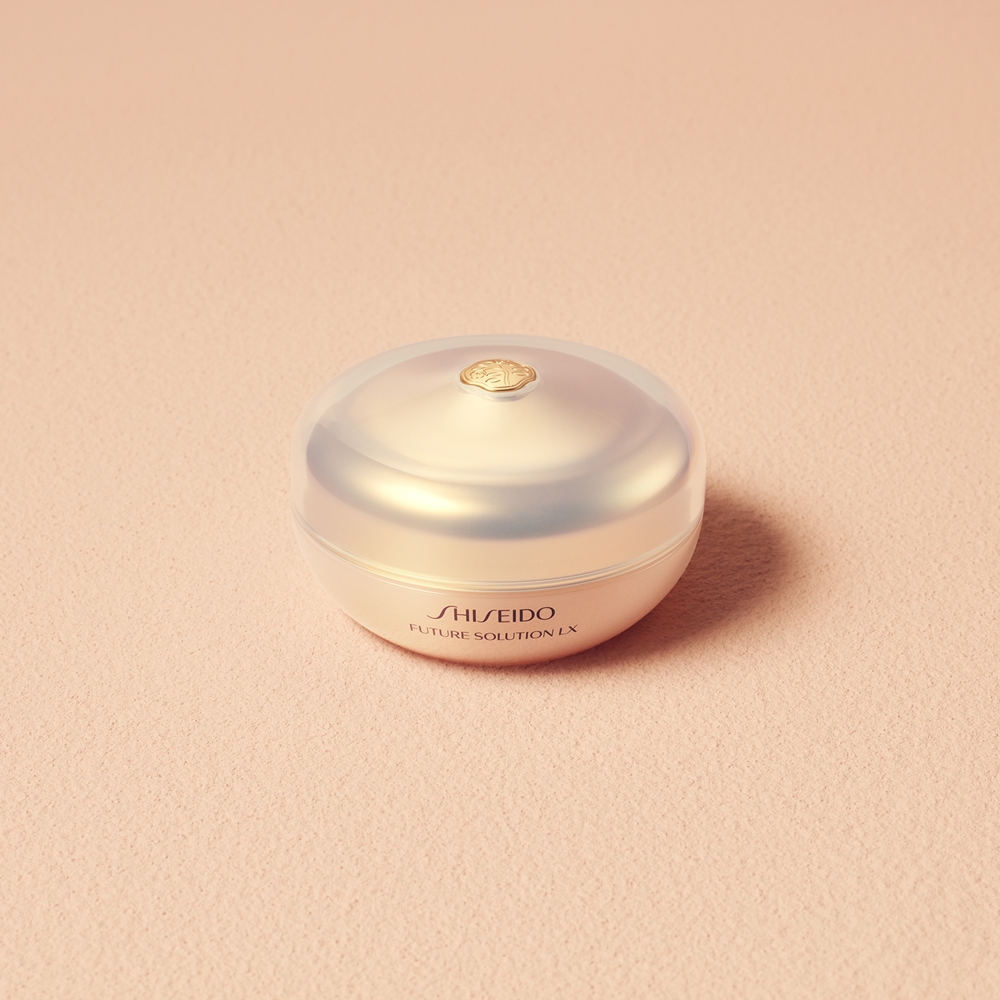 Нанесите необходимое количество пудры Shiseido Future Solution на ватный диск и приложите к лицу.