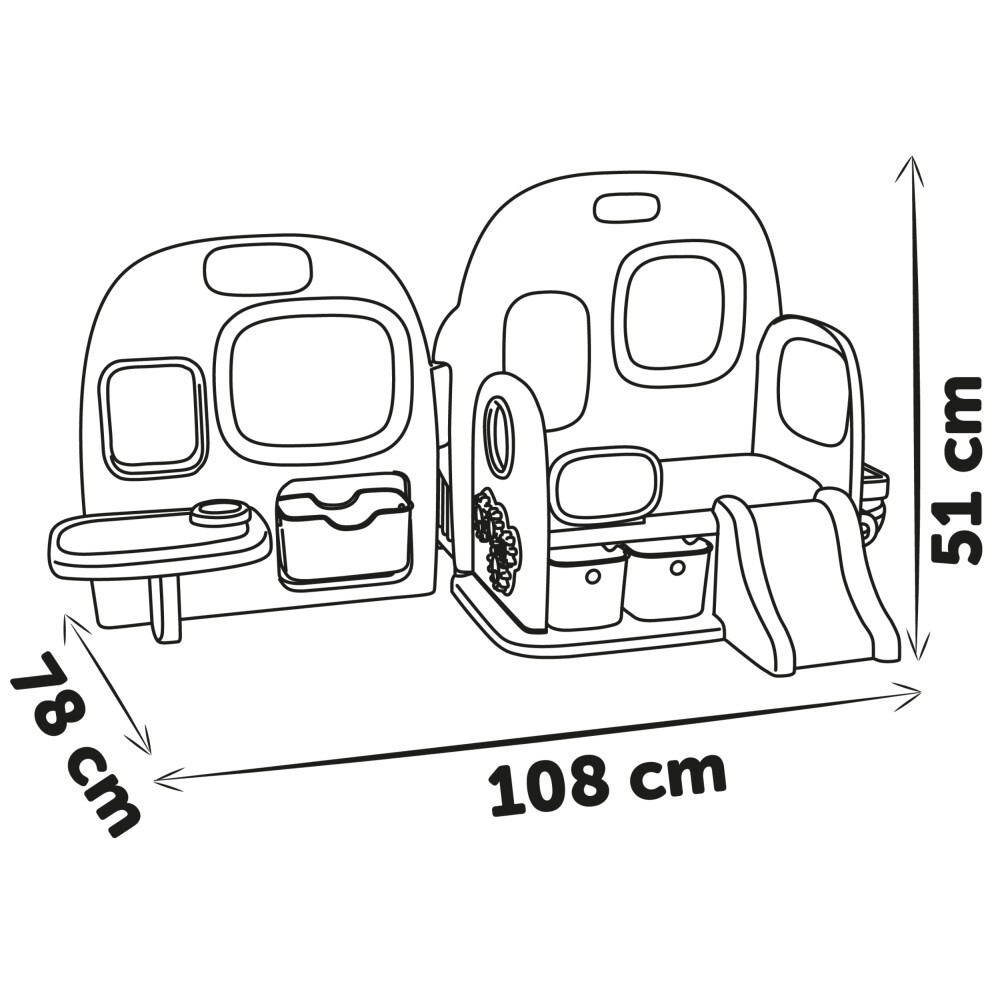 Маленьких малышей можно встретить у входа, где висят часы и праздничная стена. У кого-нибудь из малышей сегодня праздник? Игровая площадка с манежем и мячами гарантирует отличное времяпрепровождение. Благодаря ванной комнате с унитазом, раковиной и рулоном туалетной бумаги куклы позаботятся о своей личной гигиене. Они также могут вздремнуть после обеда на двухъярусной кровати с горкой. Обед подается в столовой, совмещенной с художественной зоной.