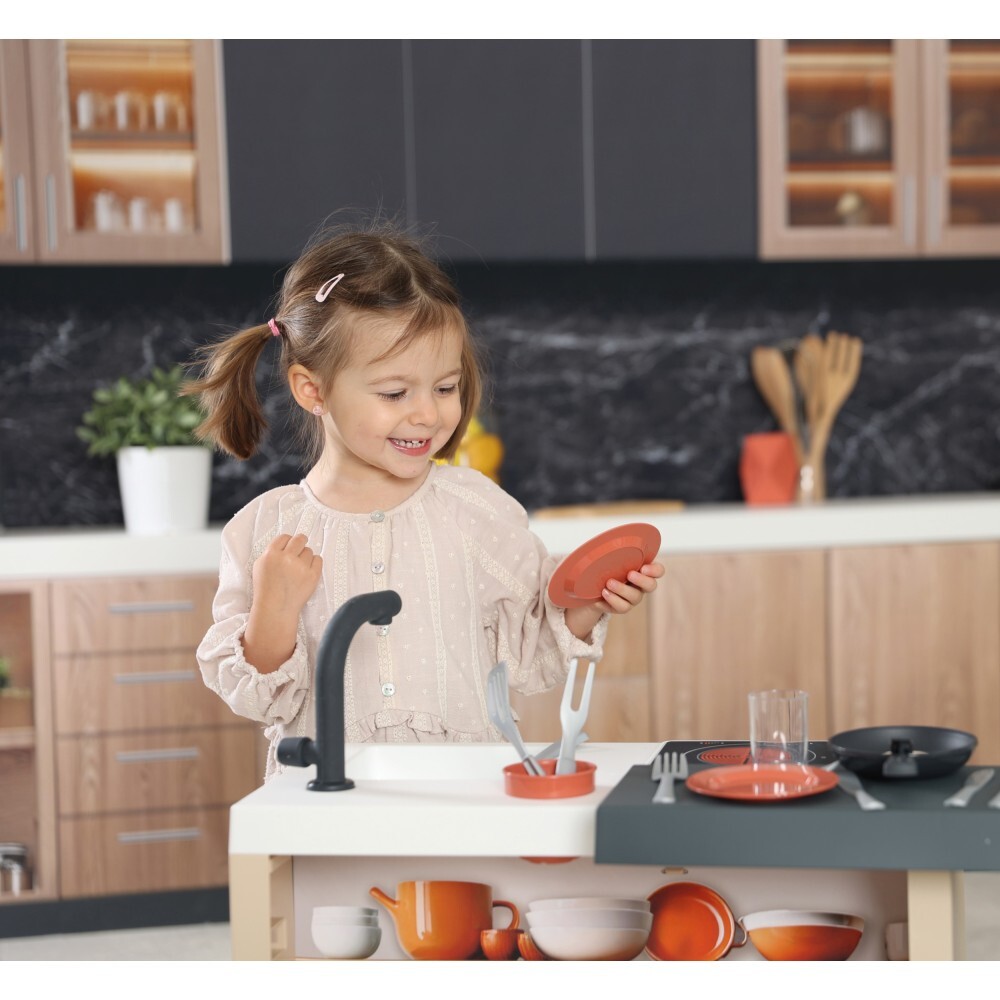 Кухня Smoby - это не просто игрушка, это стильное пространство, полное кулинарного вдохновения. Центральный остров - идеальное место для совместной готовки с друзьями или родителями. Реалистичные элементы, такие как варочная панель, открывающийся духовой шкаф и холодильник, а также раковина, придают игре ощущение подлинности. А как насчет макарон, которые меняют цвет при погружении в воду? Такие детали не только развлекают, но и удивляют и развивают детское любопытство! Вращающийся диск на варочной панели и кухонные гаджеты, входящие в комплект, еще больше усиливают веселье!