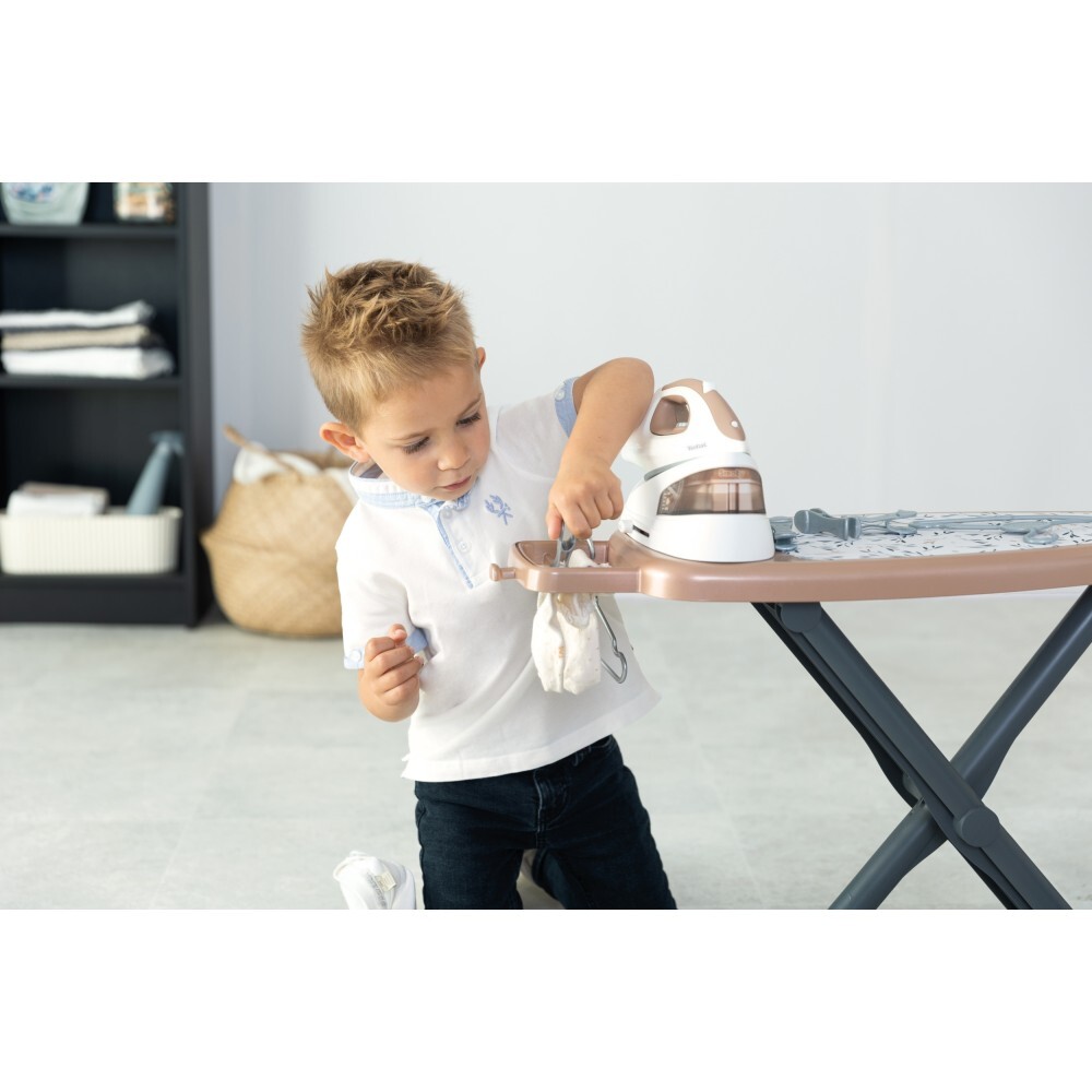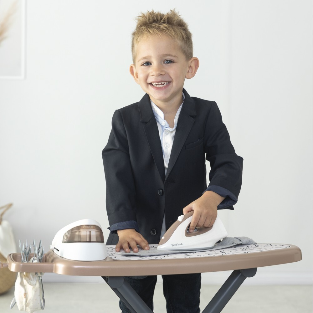 Современная гладильная доска MiniTefal оснащена реалистичным парогенератором (манекеном) и безопасной игрушечной версией утюга. Благодаря дополнительным аксессуарам - вешалкам и пряжкам - дошкольники смогут развешивать постиранную одежду, как это делают взрослые! Игрушки выполнены с вниманием к деталям и устойчивости, а в производстве использован переработанный пластик. Игра в глажку помогает сформировать положительные ассоциации, связанные с помощью по дому, учит аккуратности и приобщает ребенка к домашним обязанностям. Ребенок получает возможность понять, что уборка - это приятно и весело.