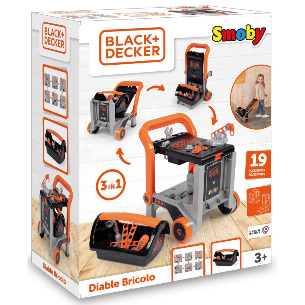 - Black & Decker Handyman Toolbox - это мобильный верстак 3 в 1 по лицензии Black+Decker. Игрушка сочетает в себе три функции мастерской, тачки и тележки, побуждая детей играть вручную и творчески.
