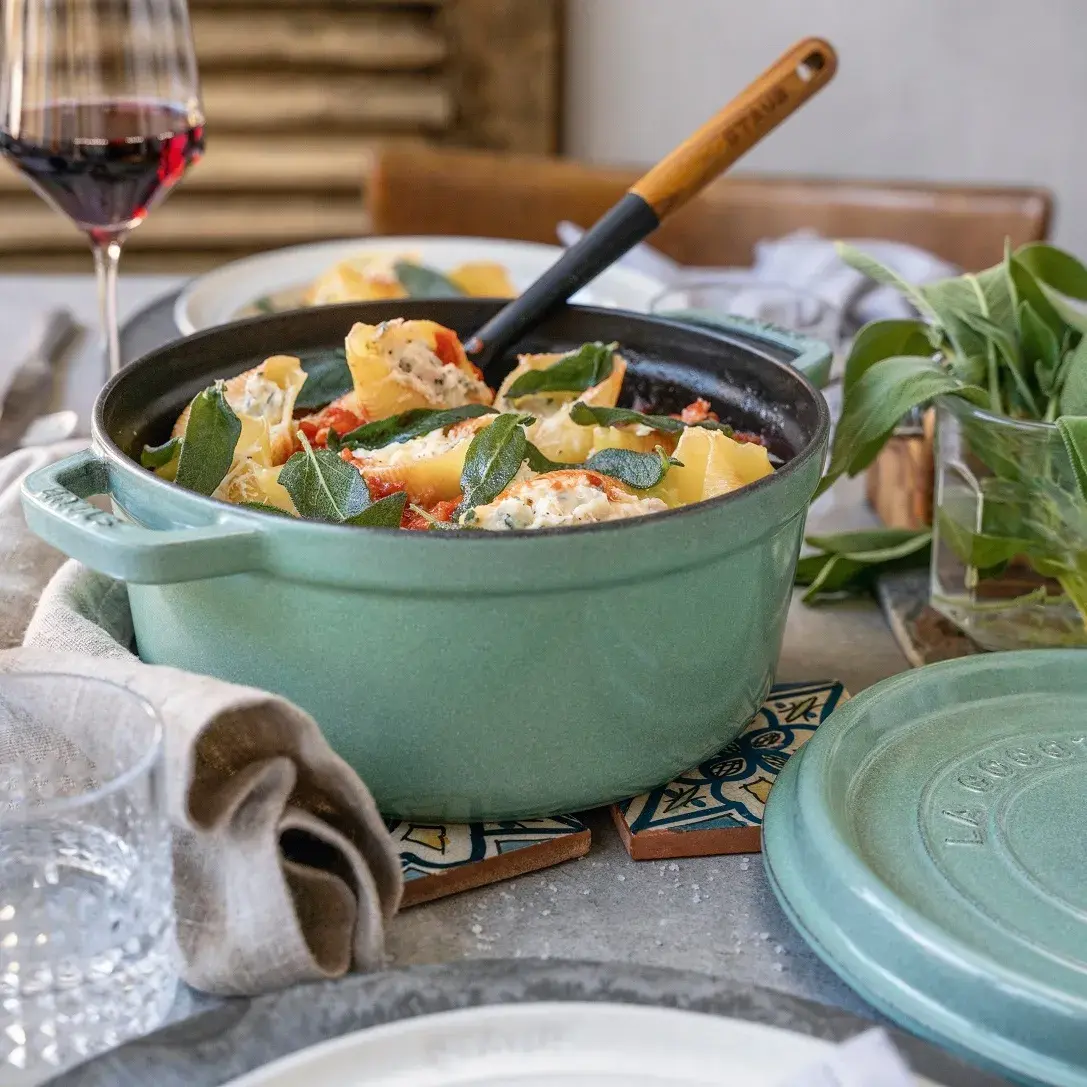 Эта чугунная кастрюля французского бренда STAUB размером 24 см и объемом 3,8 литра наверняка оправдает ваши ожидания. Ароматные голубцы, фаршированные перцы, сочное жаркое, свежий хлеб и многое другое - ее практичность позволит вам приготовить самые разнообразные блюда.