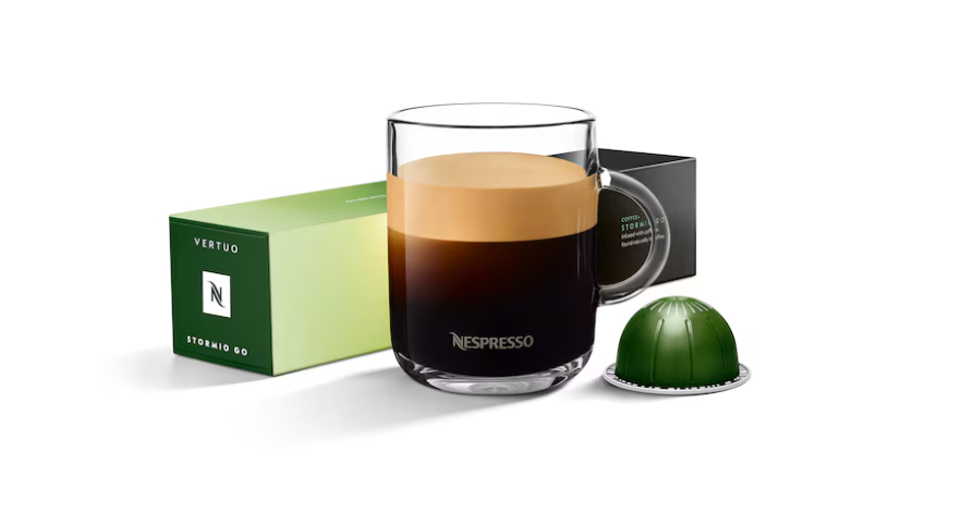 10 капсул жареного и молотого кофе, насыщенного кофеином, извлеченным из кофе для системы NESPRESSO.