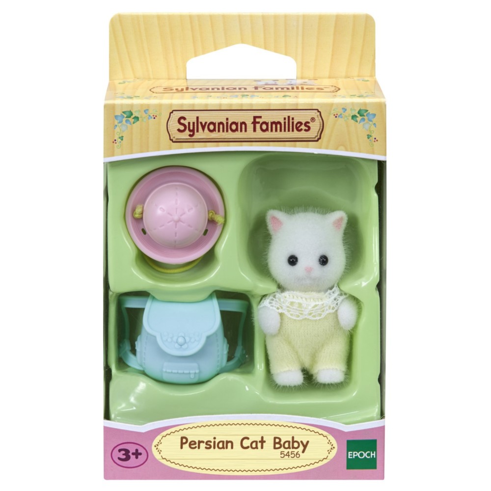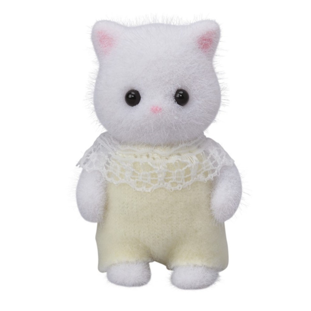 Маленький персидский котенок - очаровательный член семьи персидских котят. Этот милый малыш непременно украдет твое сердце! Котенок одет в прекрасную пастельную одежду и розовую шляпу, а на спине у него голубой рюкзачок. Он готов к совместной игре и исследованию мира Sylvanian! Обязательно отправляйтесь в Колоритный Детский Сад Sylvanian. Фигурка белого котенка имеет приятную на ощупь, пушистую шерсть - идеальную для гладкания!