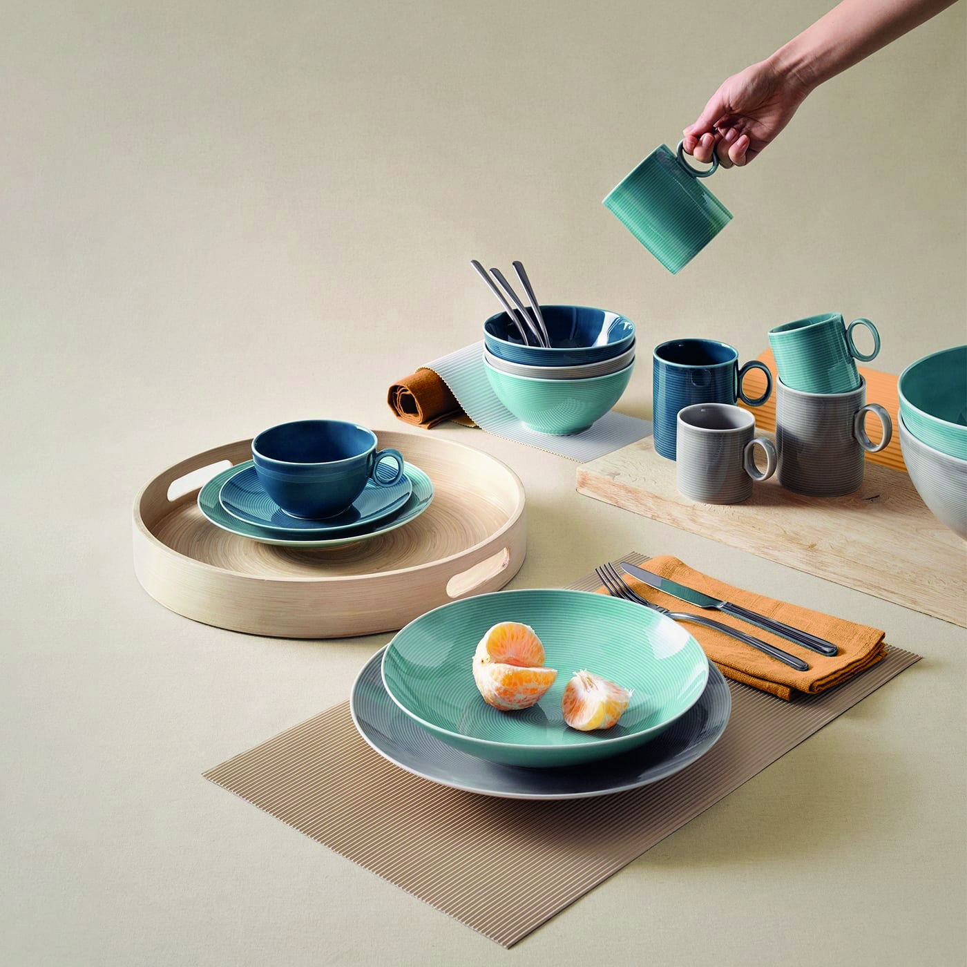 Синяя минималистичная обеденная тарелка из коллекции Loft Color от Thomas Rosenthal – идеальное предложение для всех любителей простых форм и неочевидных оттенков. Подайте там обед или ужин и насладитесь красочной едой.