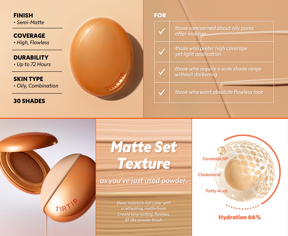Основа любого макияжа, будь то смелый вечерний макияж или очень натуральный дневной макияж, - это безупречная кожа. Именно это поможет вам достичь тональная основа TIRTIR Mask Fit AI Filter Cushion. Он идеально впитывается в кожу и обеспечивает идеальное выравнивание ее тонов. Благодаря своей способности скрывать недостатки, такие как пигментные пятна, покраснения или следы от прыщей, он мгновенно скроет их. В одно мгновение вы получите равномерный цвет лица, который послужит идеальной базой для дальнейшего макияжа.
