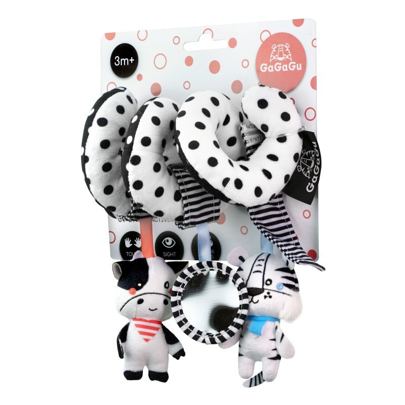Игрушки GaGaGu знакомят ребенка с миром различных текстур, цветов, звуков, форм и двигательных задач. Черно-белые цвета и выразительные узоры стимулируют зрение малышей.