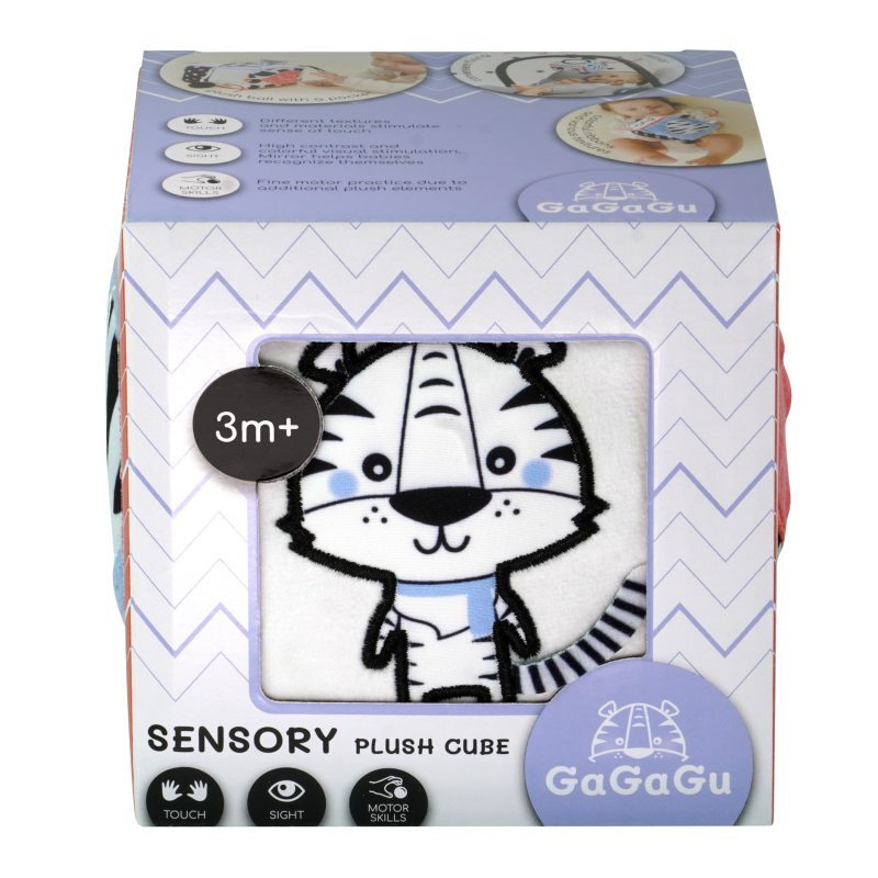 Игрушки GaGaGu знакомят ребенка с миром различных текстур, цветов, звуков, форм и двигательных задач. Черно-белые цвета и выразительные узоры стимулируют зрение малышей.