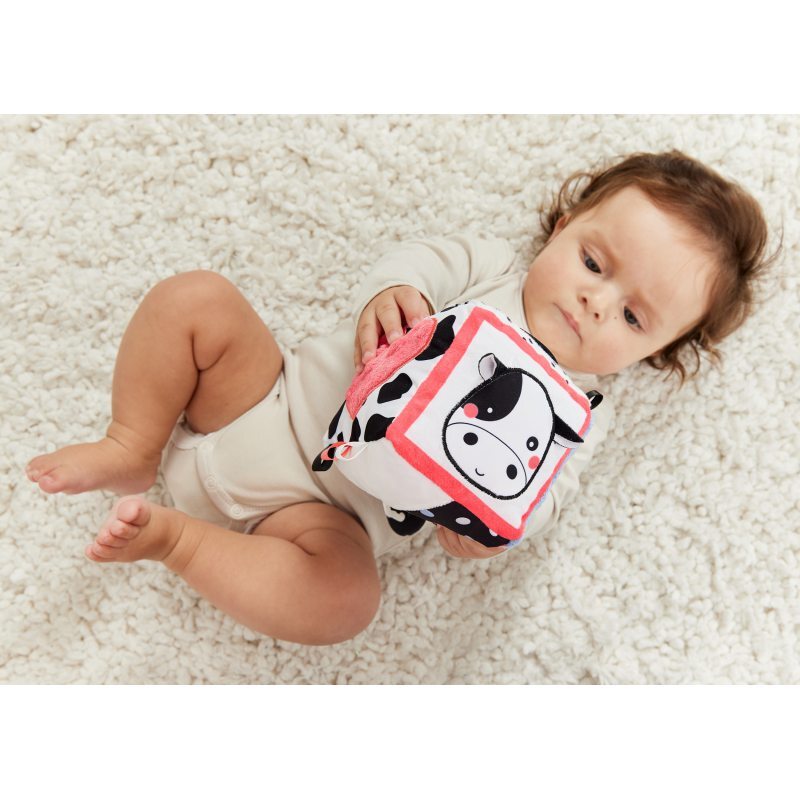 Сенсорный кубик - игрушка для ребенка от 3-х месяцев. Каждая сторона лодыжки совершенно различна, что дает вам шесть совершенно разных сенсорных ощущений — визуальных и тактильных.