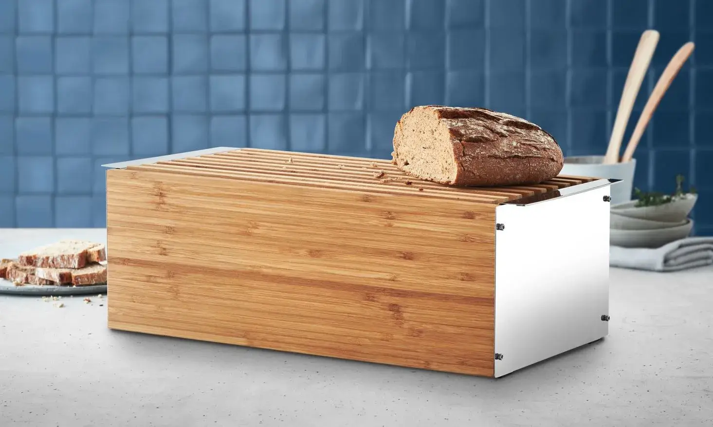 Он создан для того, чтобы ваш хлеб оставался свежим в течение длительного времени. Прочная конструкция из бамбукового дерева и нержавеющей стали обеспечивает оптимальные условия хранения, защищая хлеб от высыхания.