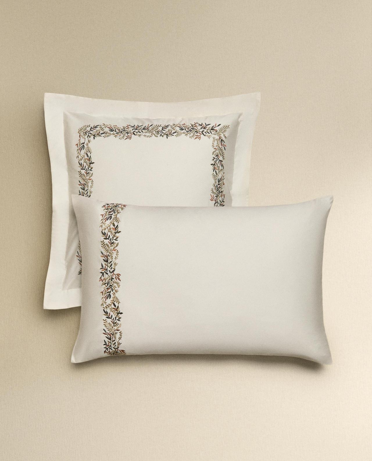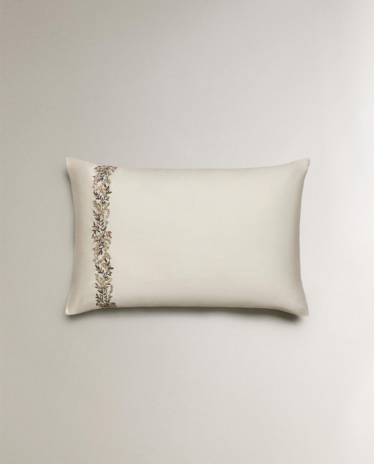 Zara Home - Атласная наволочка с вышивкой в виде листьев 80x80 см