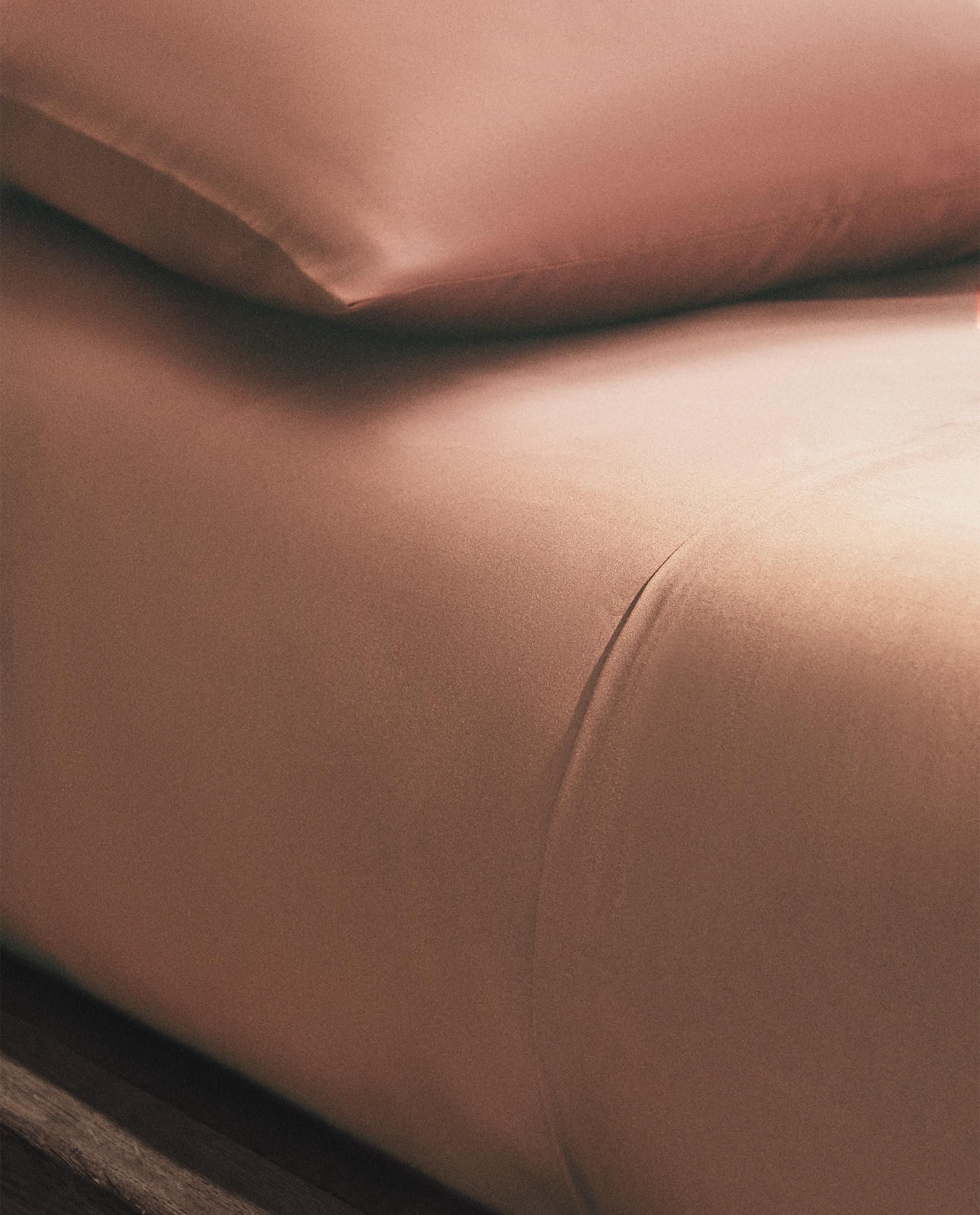 Zara Home - Атласная простыня с эластичной лентой, высота 30 см (вес 300 нитей), розовый, 180х200х30 см