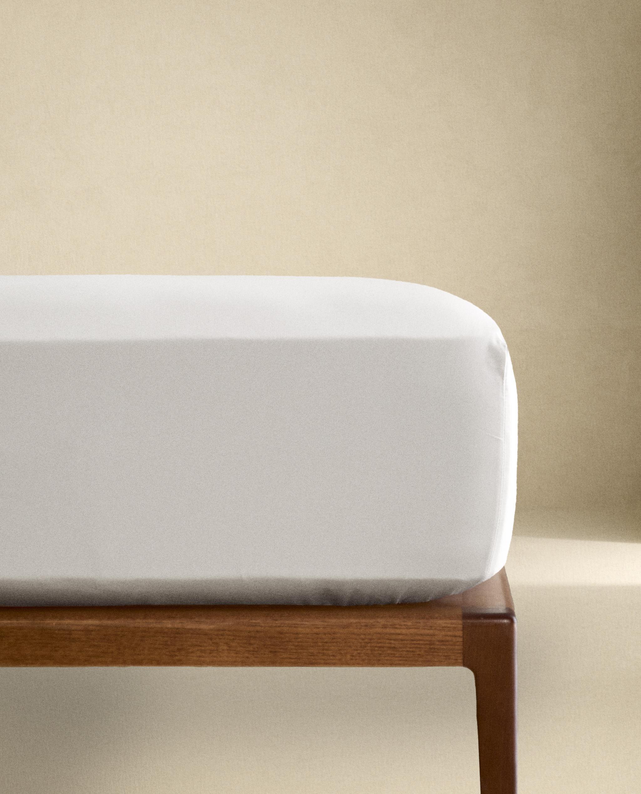 Гладкая простыня с эластичной атласной лентой на 300 нитей. Для матраса высотой 30 см.
