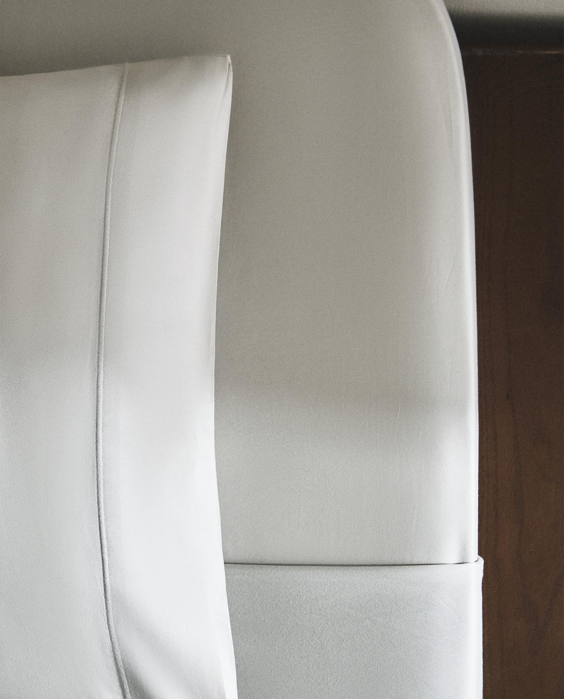 Гладкая простыня с эластичной атласной лентой на 300 нитей. Для матраса высотой 40 см.