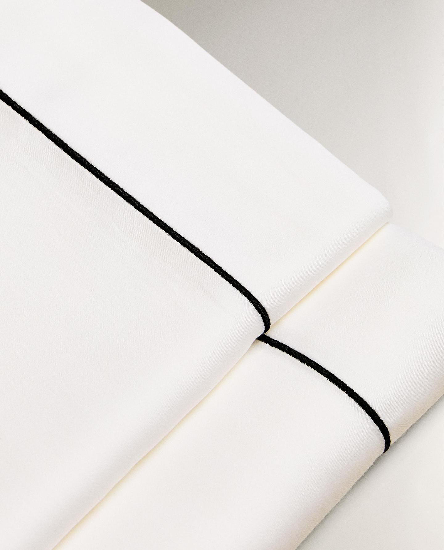 Простая простыня из хлопкового атласа 300 нитей с контрастным подолом.