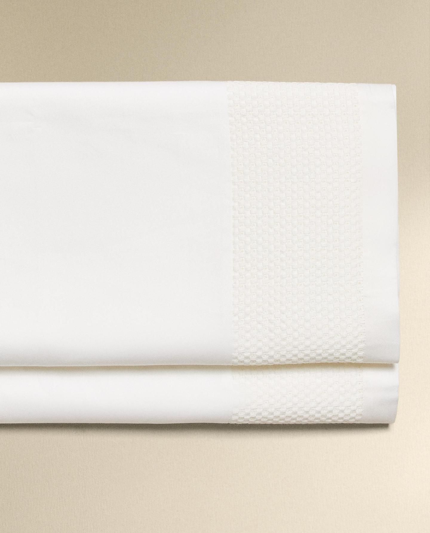 Zara Home - Атласная простыня с вязаной каймой, белый, 290x280 см