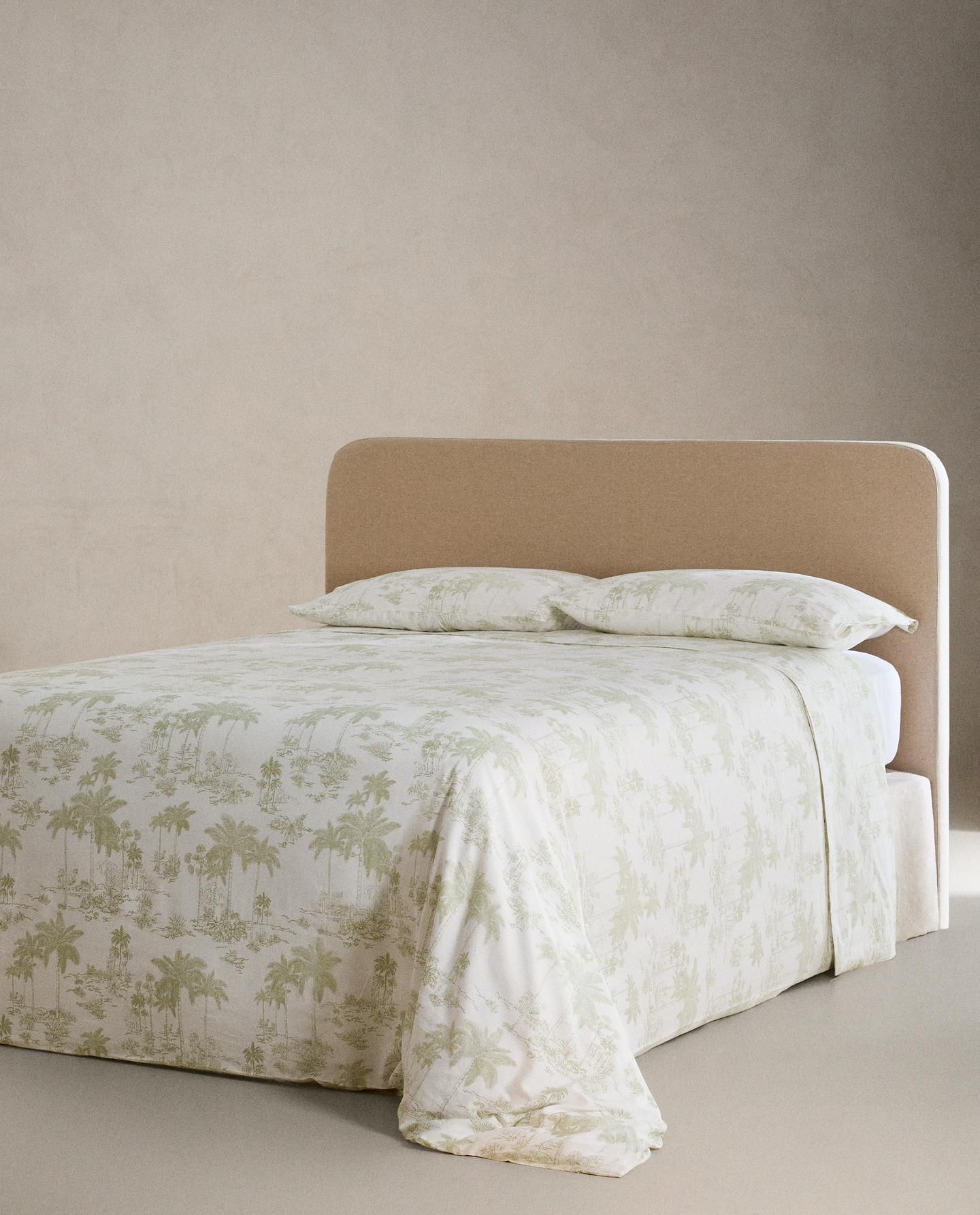 Zara Home - Атласная простыня в пальмах toile de jouy, зеленый, 210x280 см