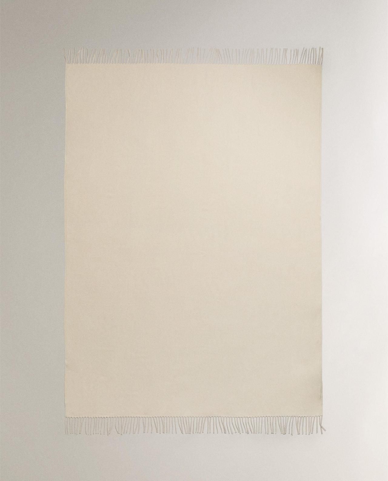 Гладкое мягкое на ощупь одеяло с бахромой на концах.