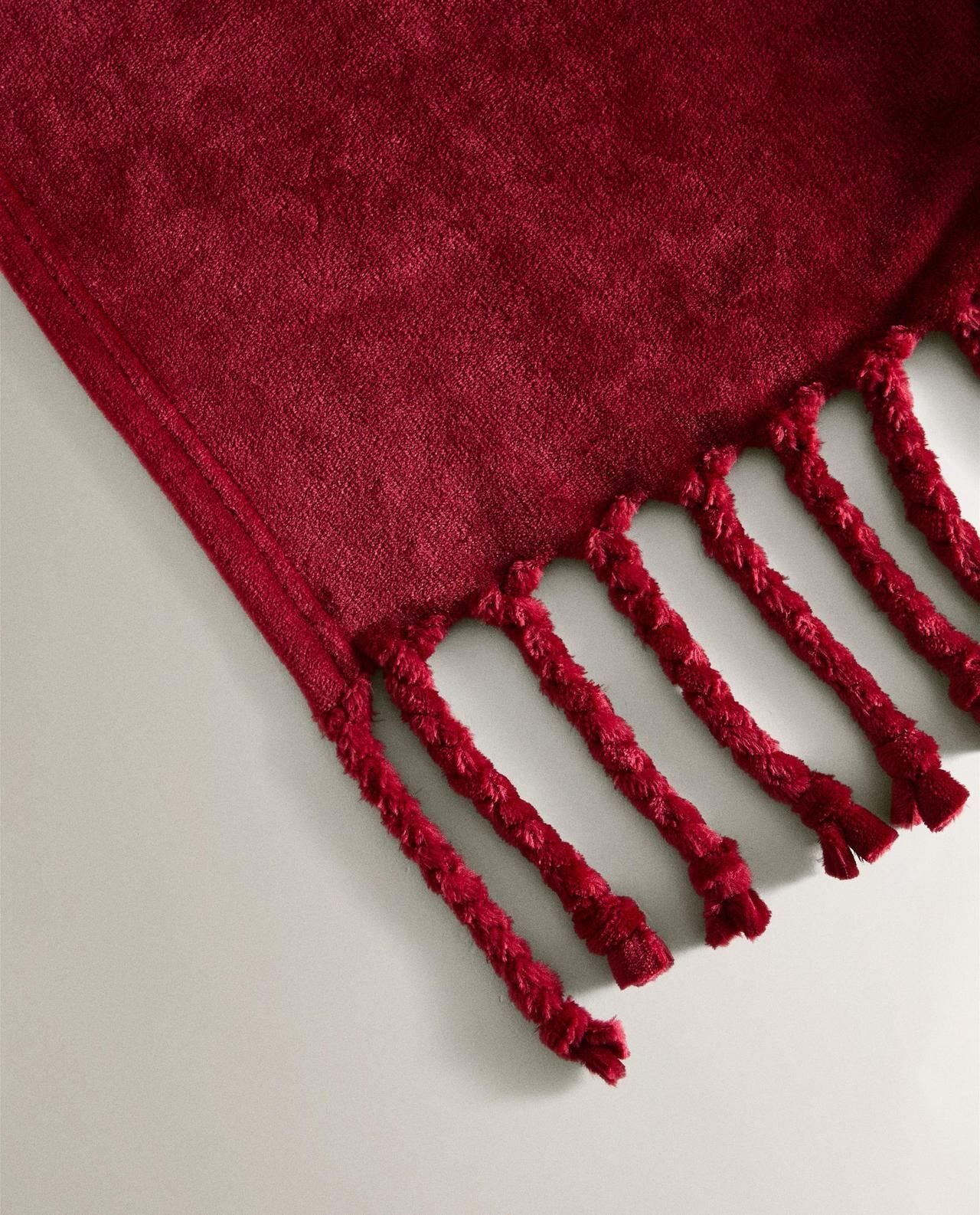Zara Home - Флисовый плед с бахромой, красный, 140x190 см