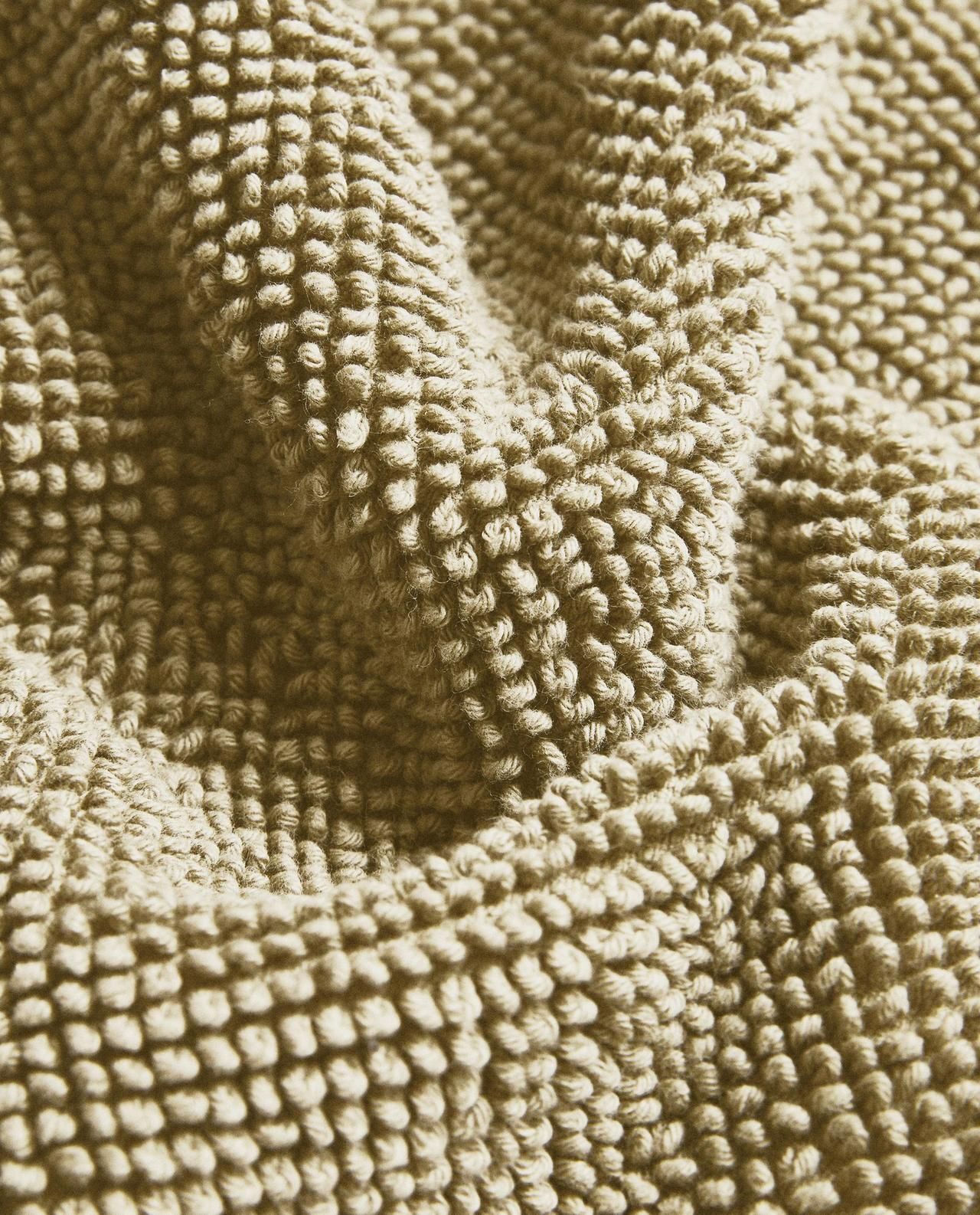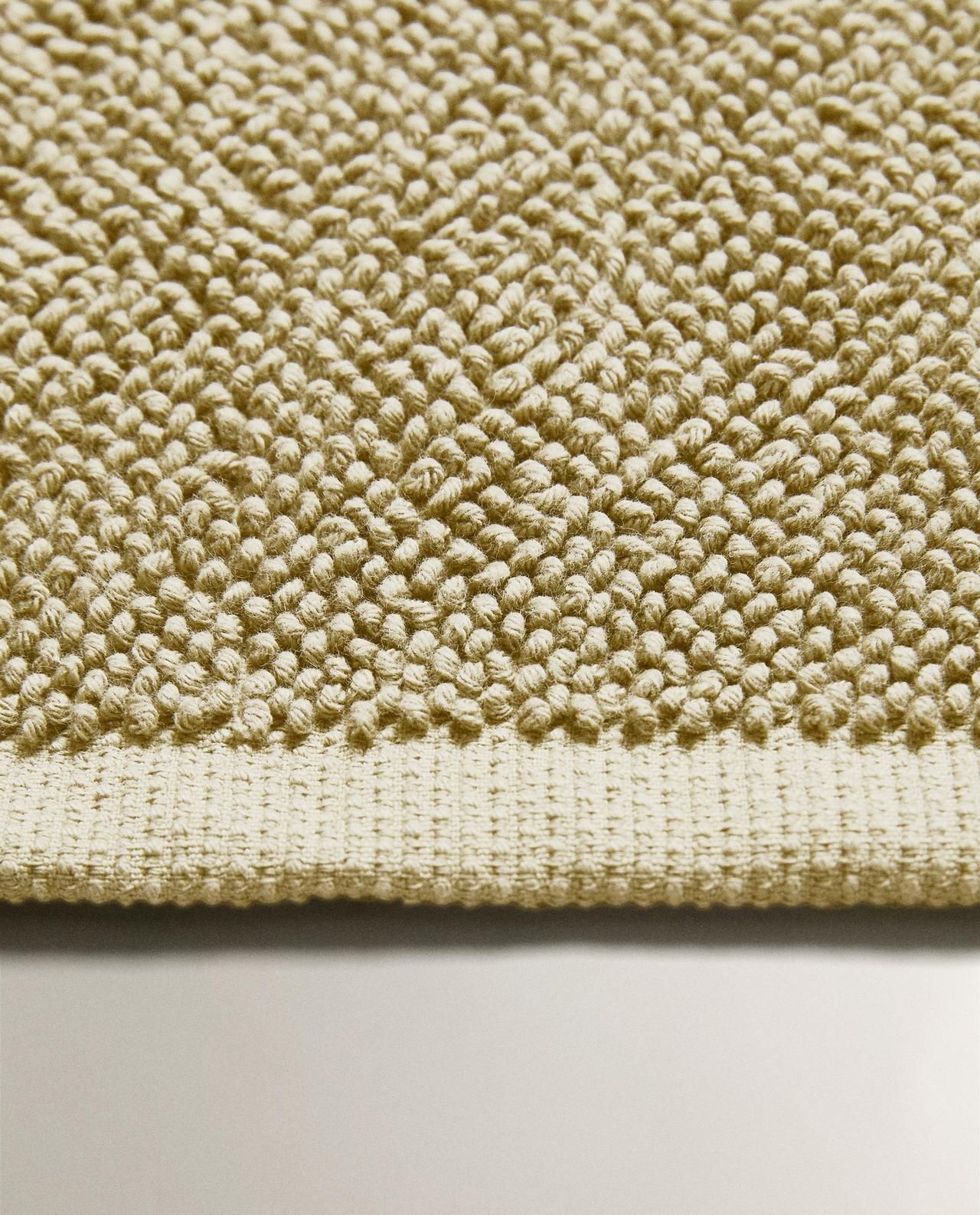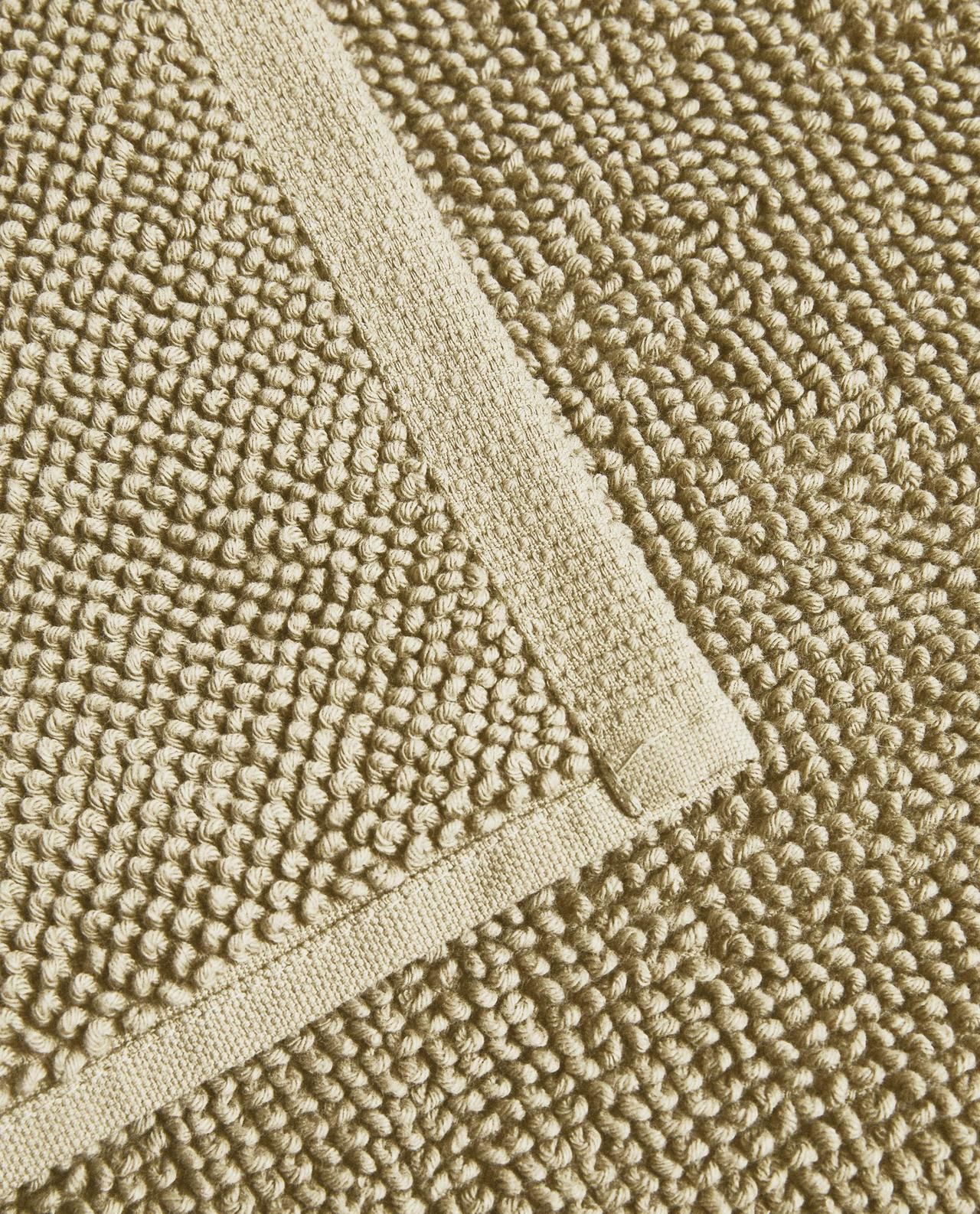 Прямоугольный хлопковый коврик для ванной с плотной и впитывающей текстурой. Дно имеет нескользящее покрытие, которое обеспечивает устойчивость и предотвращает скольжение на мокрых полах.